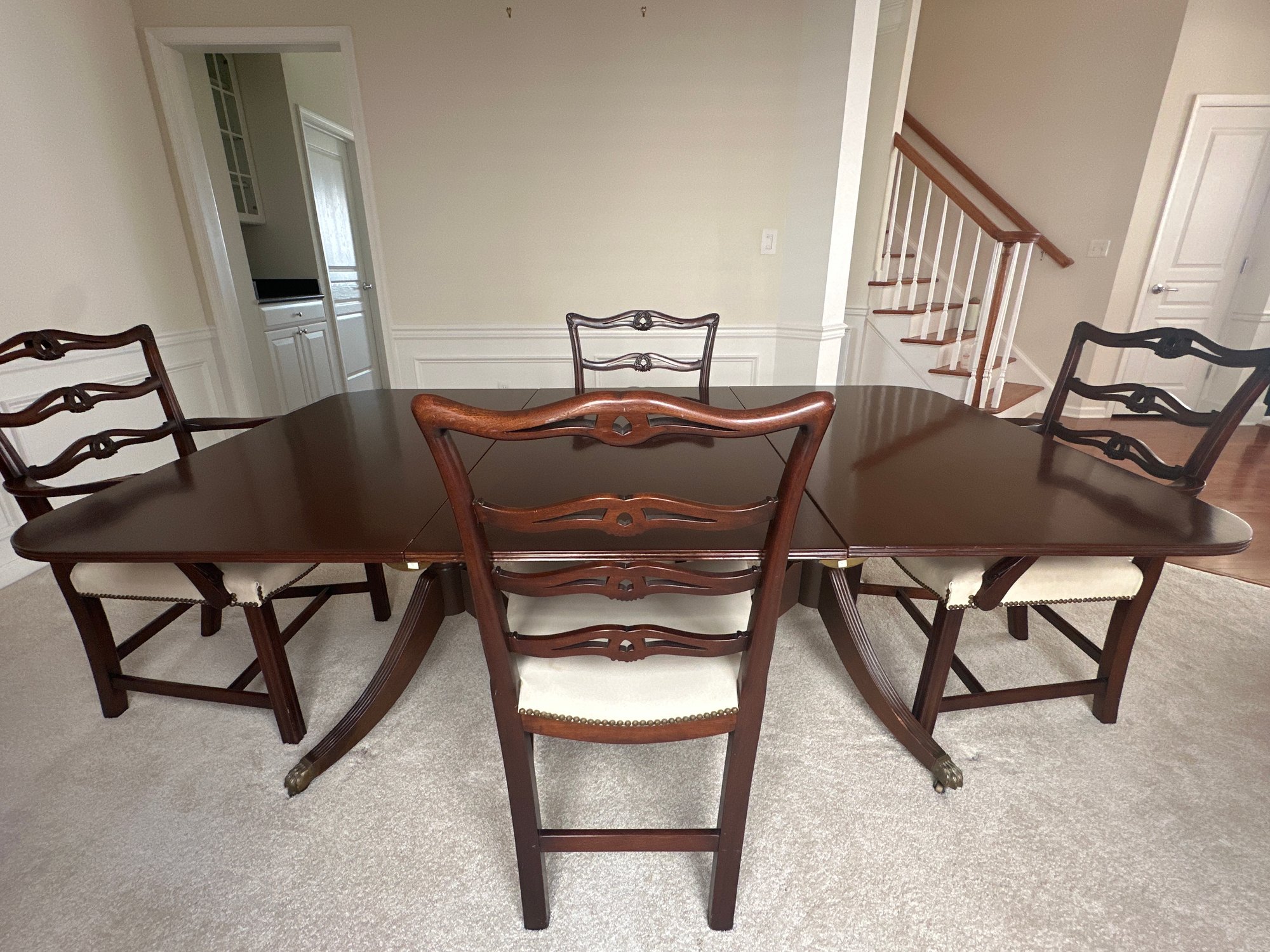 Mahogany 4 - 8 person table. Leaf included 18 inches