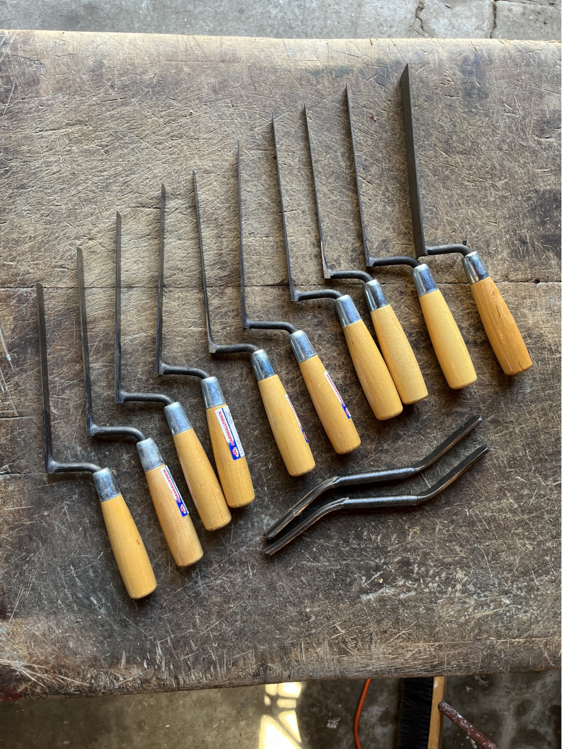 Forged from one piece of high carbon steel. Tapered for the required sturdiness and correct flexibility. High shank and high lift give plenty of hand room. Retail $15-$20 each.