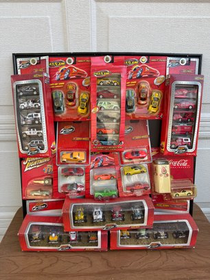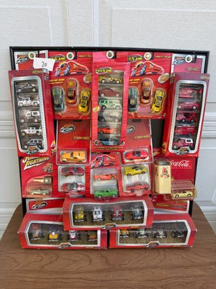 Diverse Set: Includes various themed packs such as police vehicles, racing cars, and a Coca-Cola branded set.