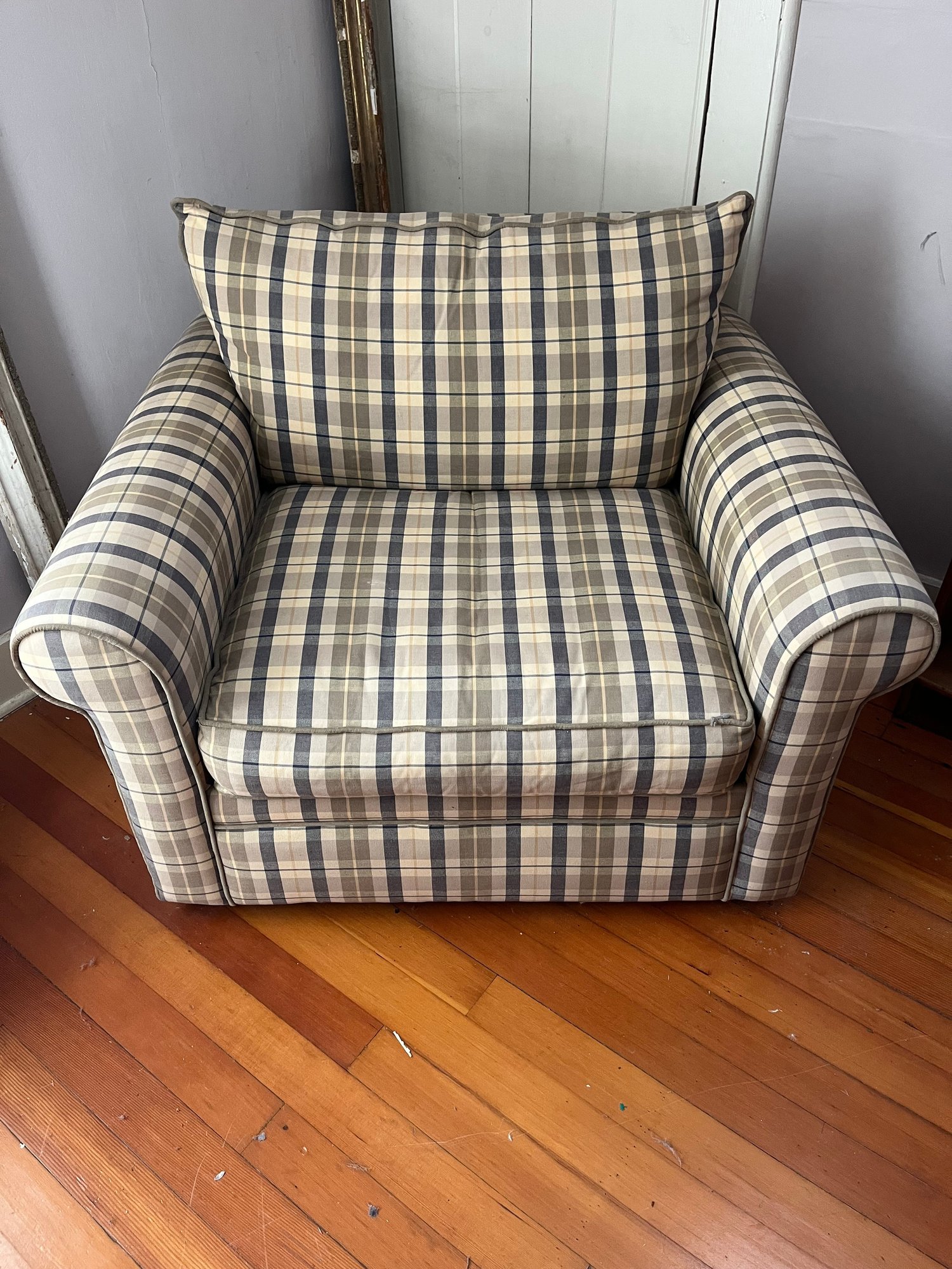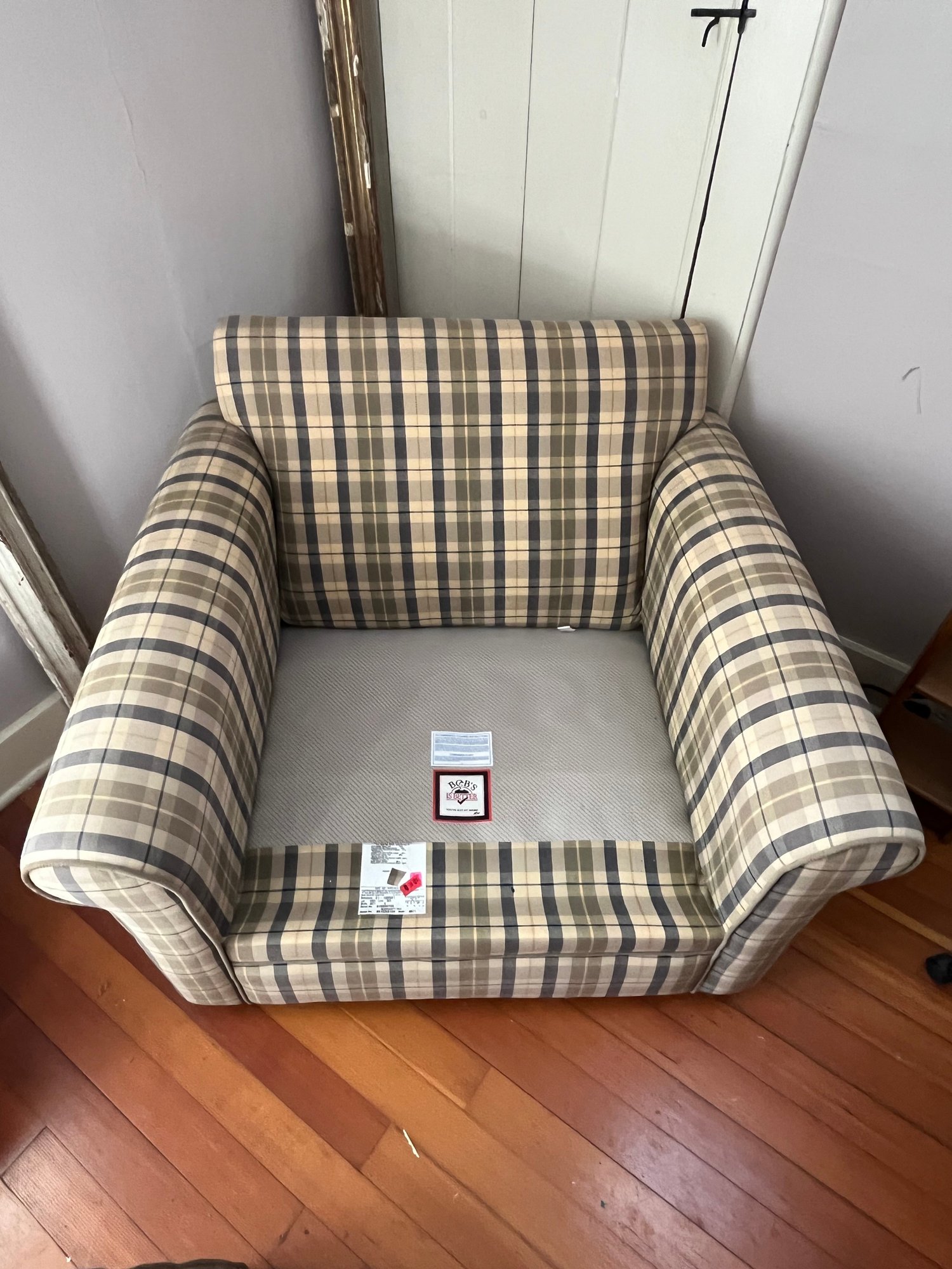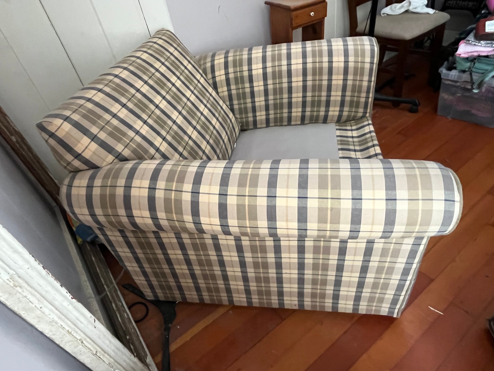 From Bob’s. Measures 44 inches across by 39.5 inches deep by 31 inches high. Couch is in good condition with no pulling, rips or tears. Item is on the second floor and winning bitter is required to come with appropriate manpower to remove it.