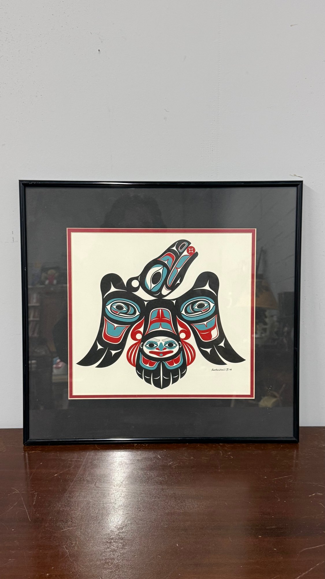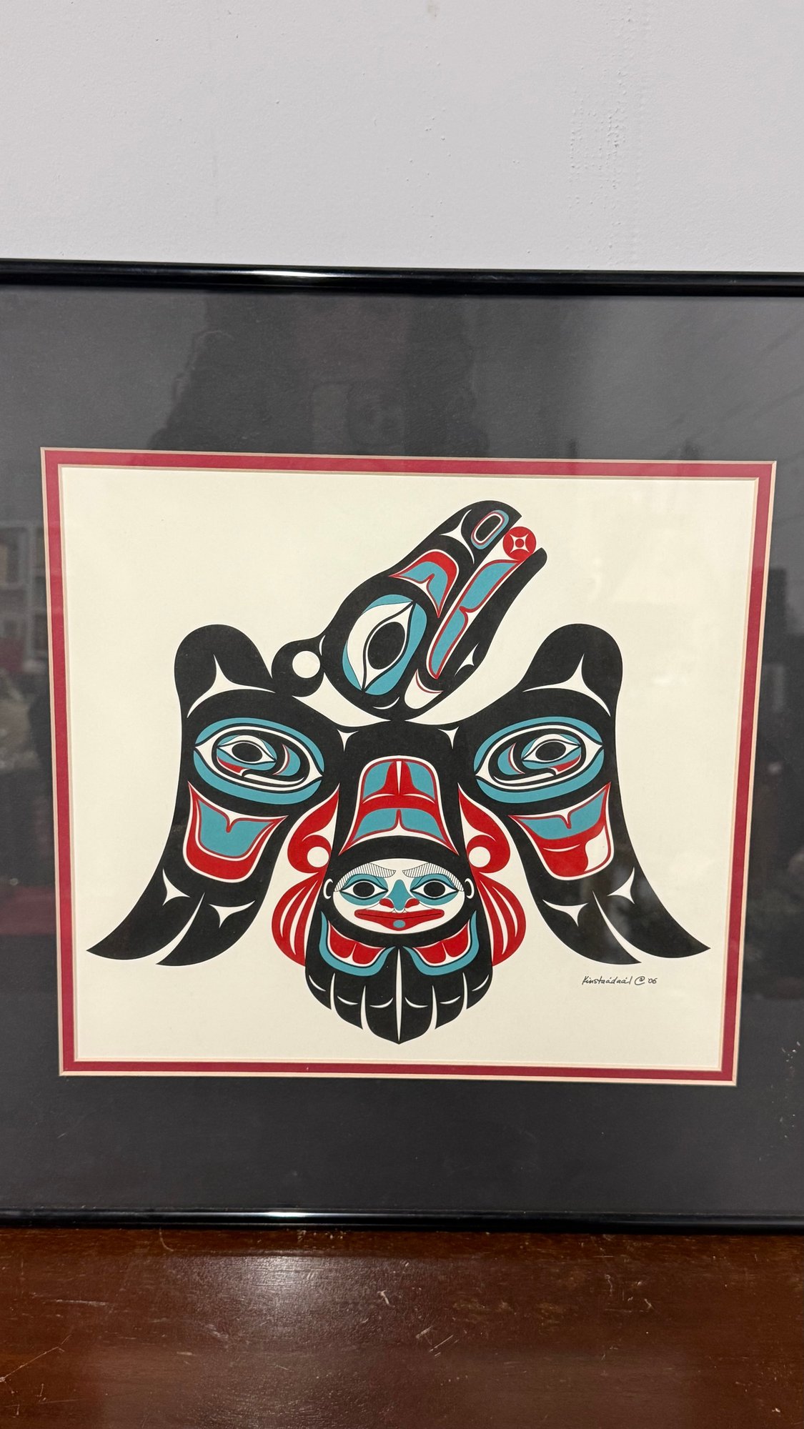 Raven’s Journey draws on Northwest Coast Indigenous formline design traditions. Raven is a foundational figure in many Pacific Northwest tribal stories — often depicted as the trickster who brought light and change to the world and symbolizes transformation and creativity. The prints are richly colored, museum-quality giclée editions meant to last generations and appeal to both art lovers and cultural collectors
