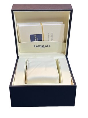 The Raymond Weil Watch Box Presentation Case is a luxurious and elegant storage solution for your watch. Made in Switzerland, this empty display box comes with a booklet, perfect for showcasing and protecting your timepiece. The sleek design and high-quality materials make it a must-have accessory for any watch enthusiast.