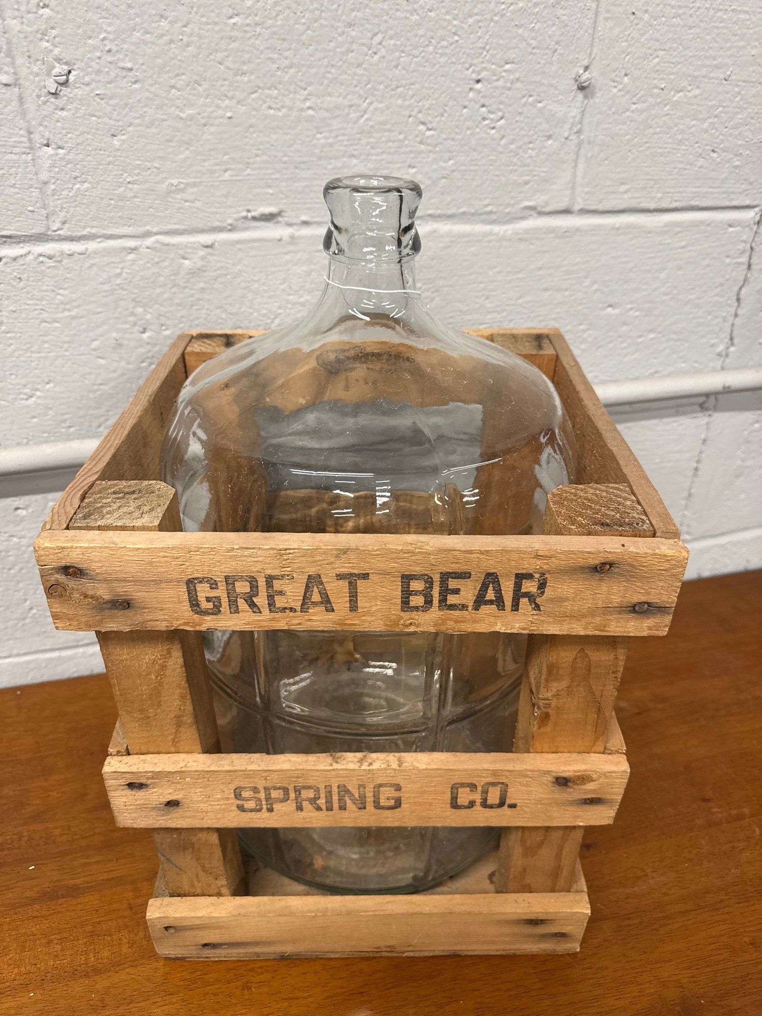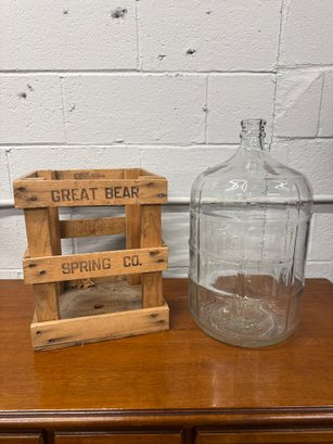 Water bottle is 10 1/2 inches wide and 20 inches high. Crate is 12 inches wide and 15 inches tall.