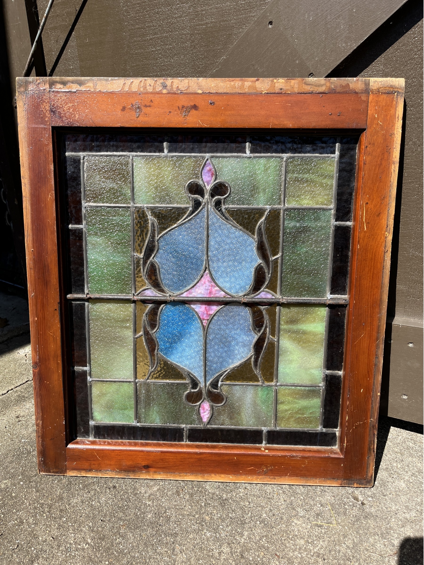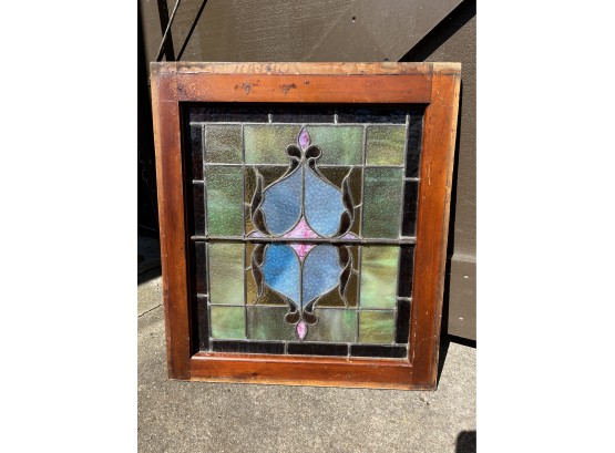 Gorgeous stained glass window. 22"x25" including wooden frame. Normal wear and tear on the wooden frame. Glasses in great condition no chips or cracks.