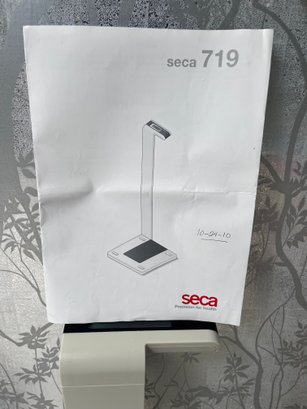 Seca 719 Supra Digital Column Scale, a high-precision medical scale designed for personal or healthcare use.