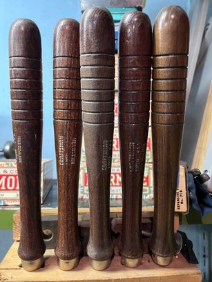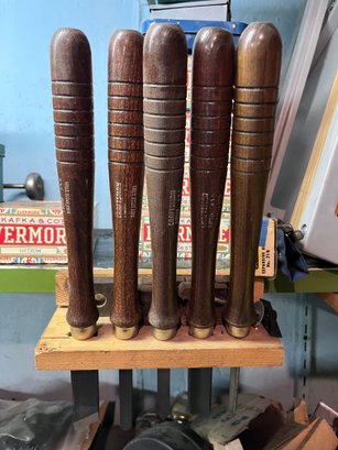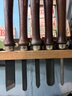 Handles: The chisels are equipped with dark wood handles for a comfortable grip.