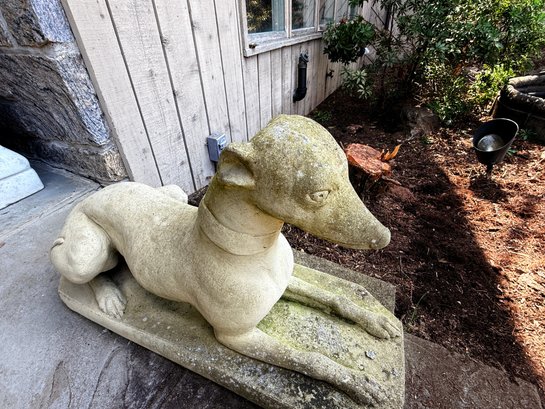 Set Of Decorative Reconstituted Stone Greyhound Dog Statues.