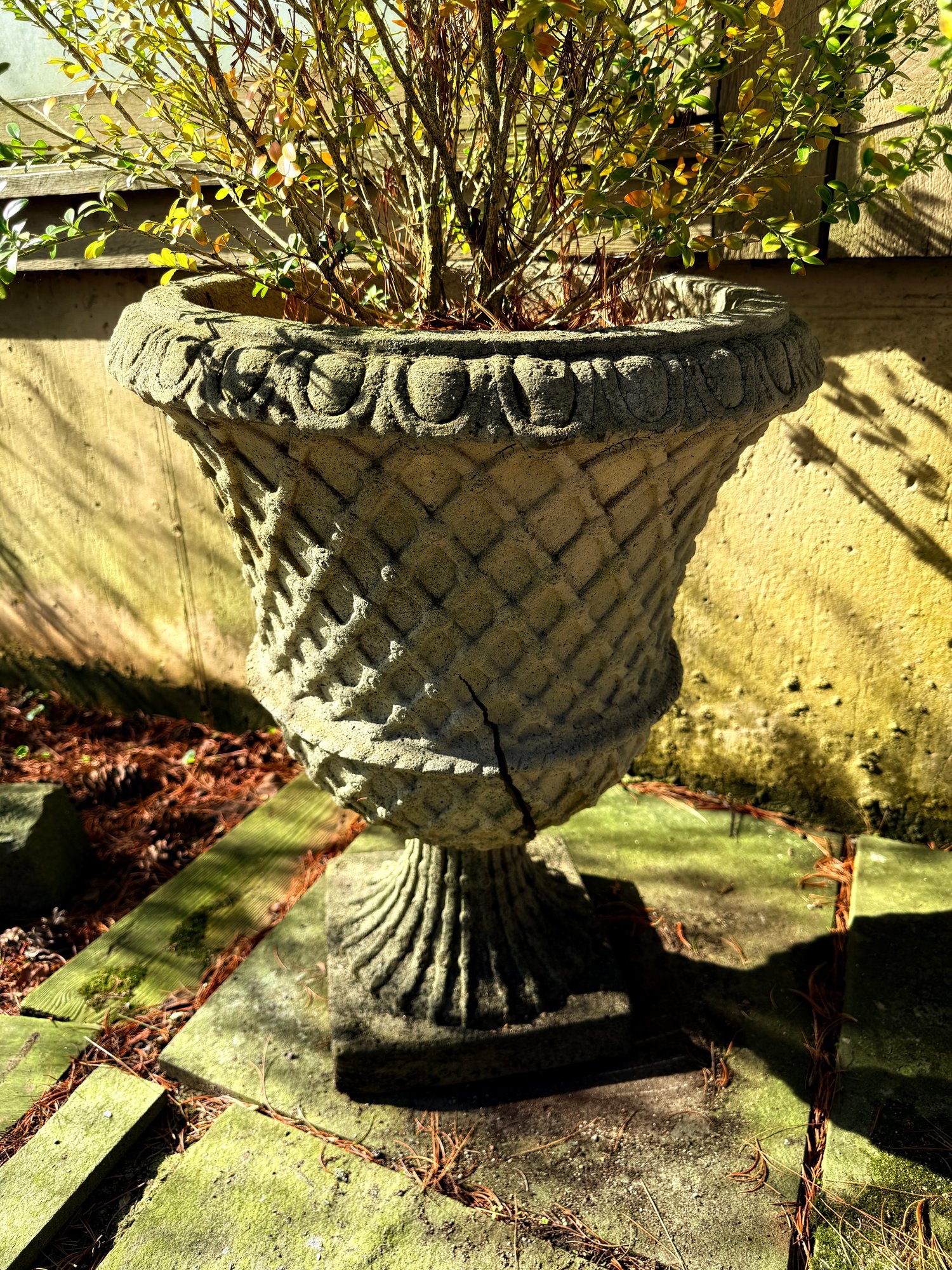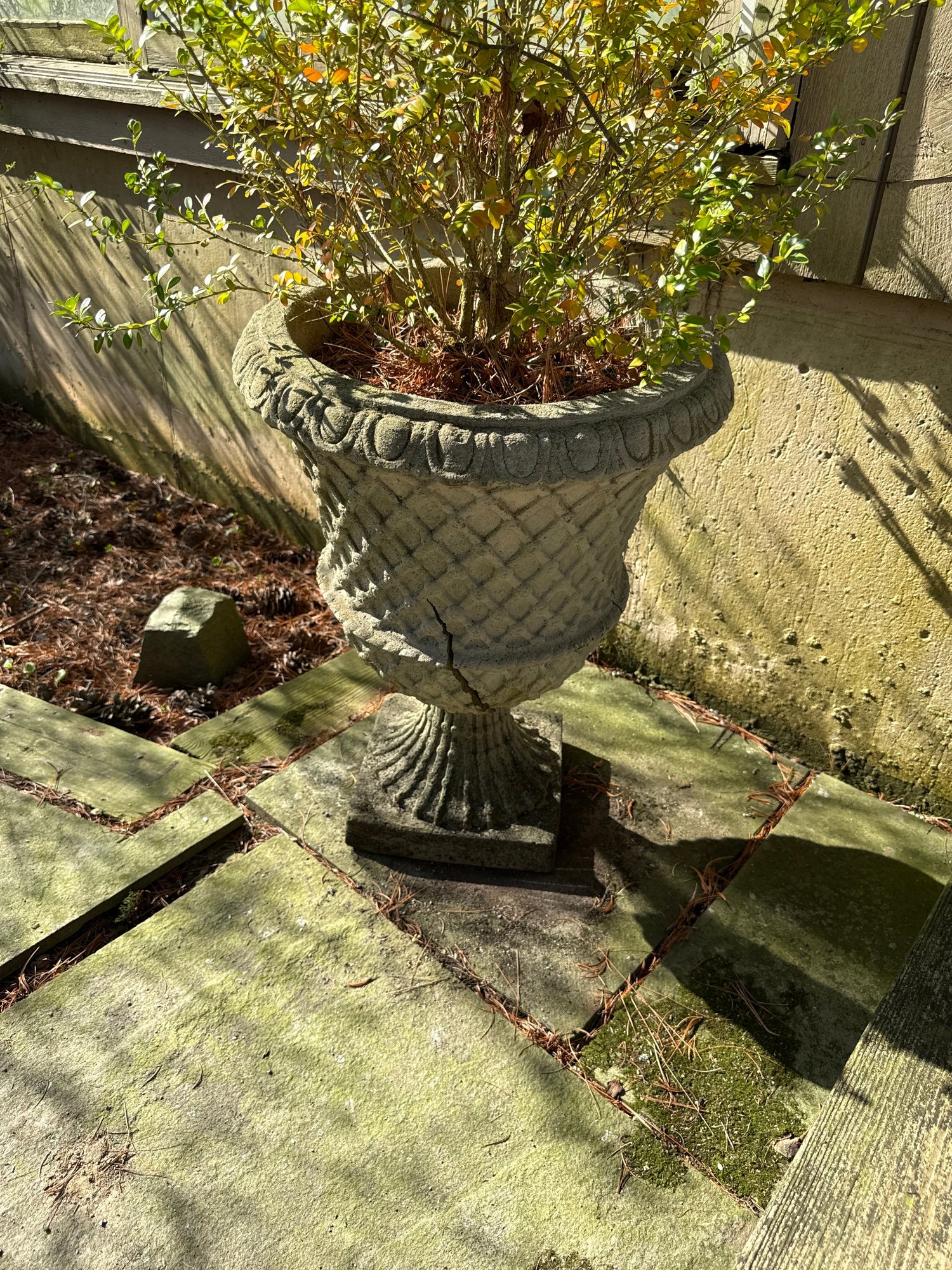 Notes: One of the planters is cracked as shown- condition consistent with outdoor use - chips