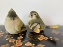 Set Of Resin Decorative Birds With green feathers and whimsical expressions. Birds are 5 inches tall.