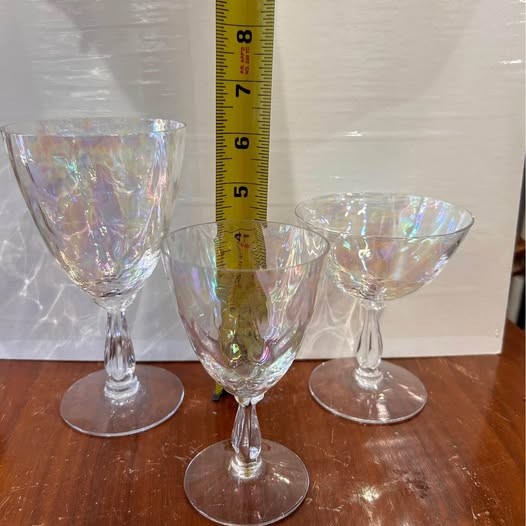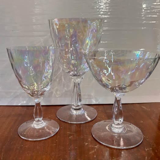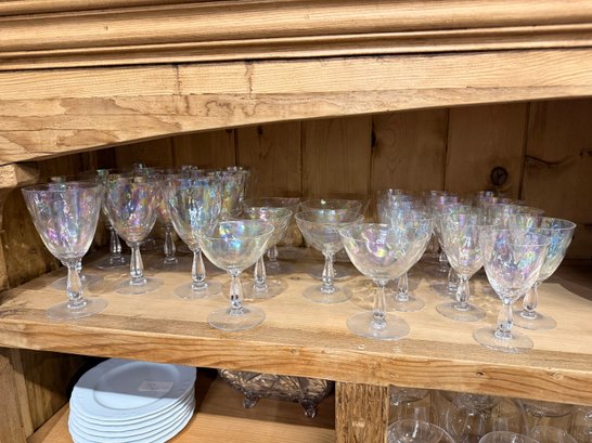 Lot of beautiful shimmering iridescent glasses. Includes 12 small glasses, 8 of the small wide, and 10 of the taller glasses.