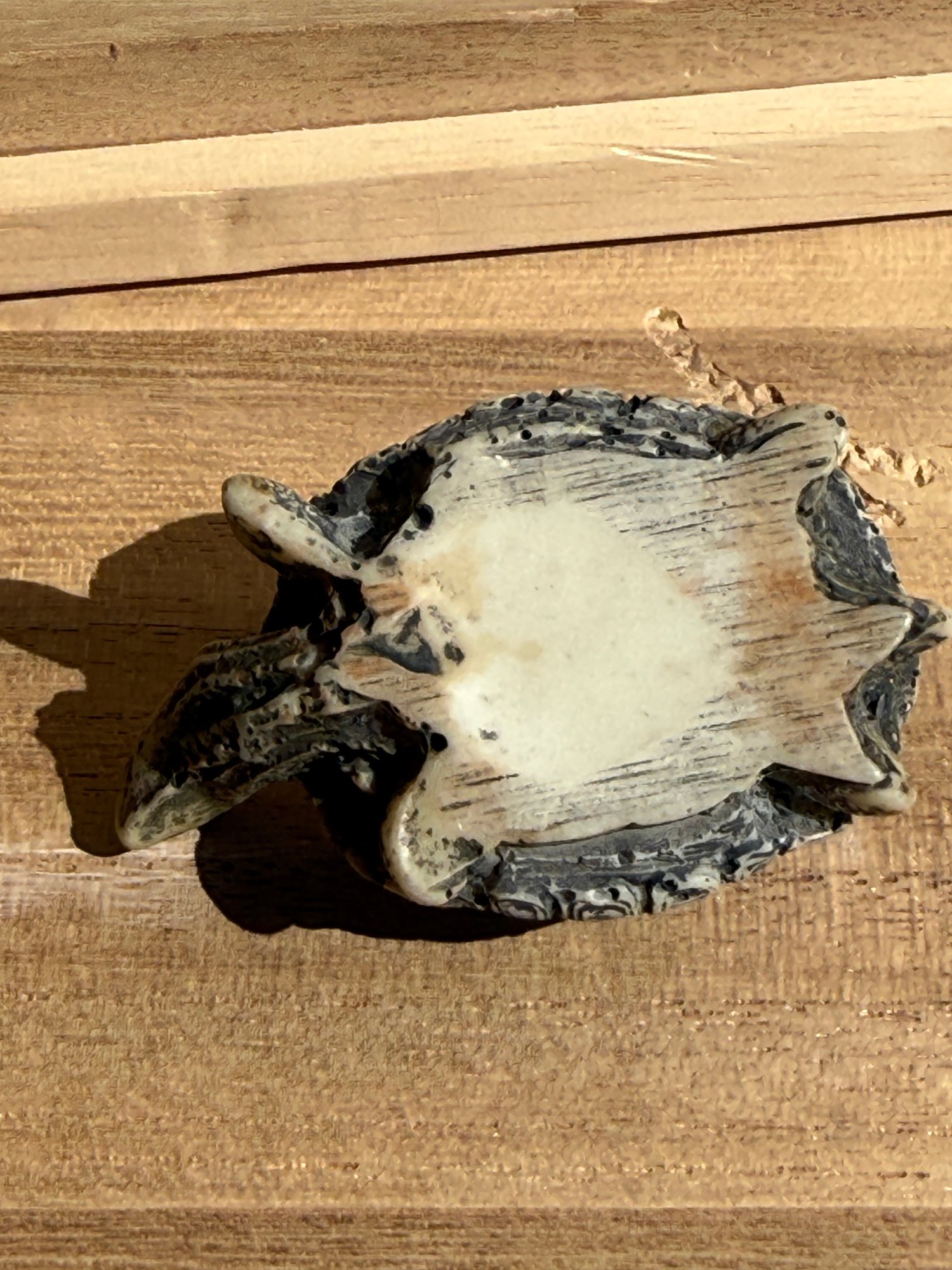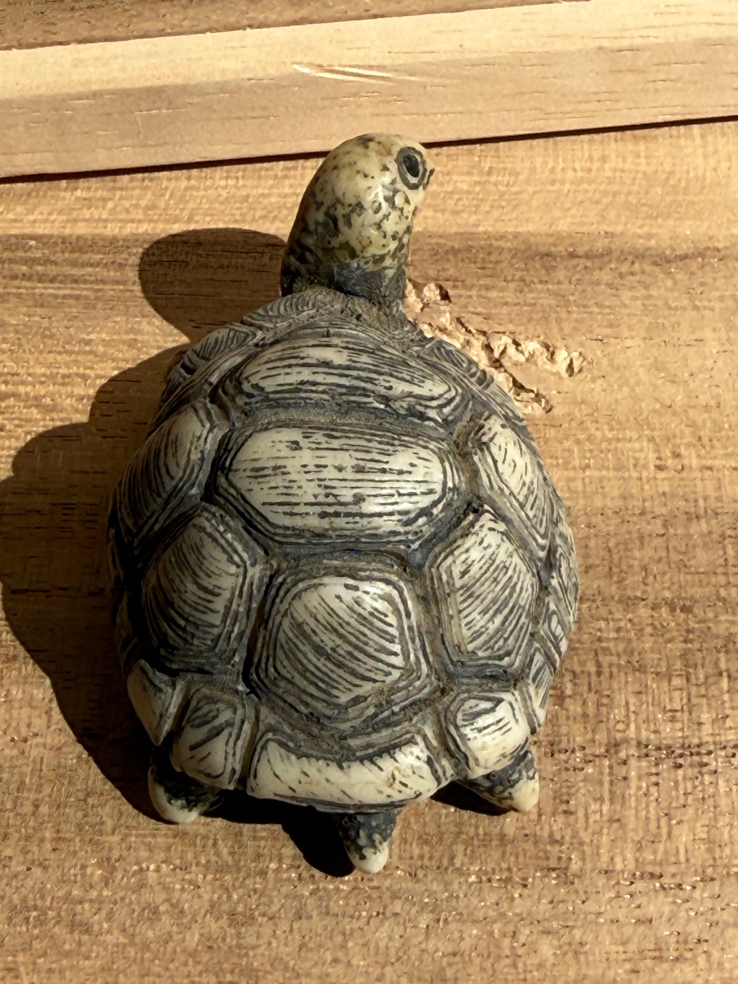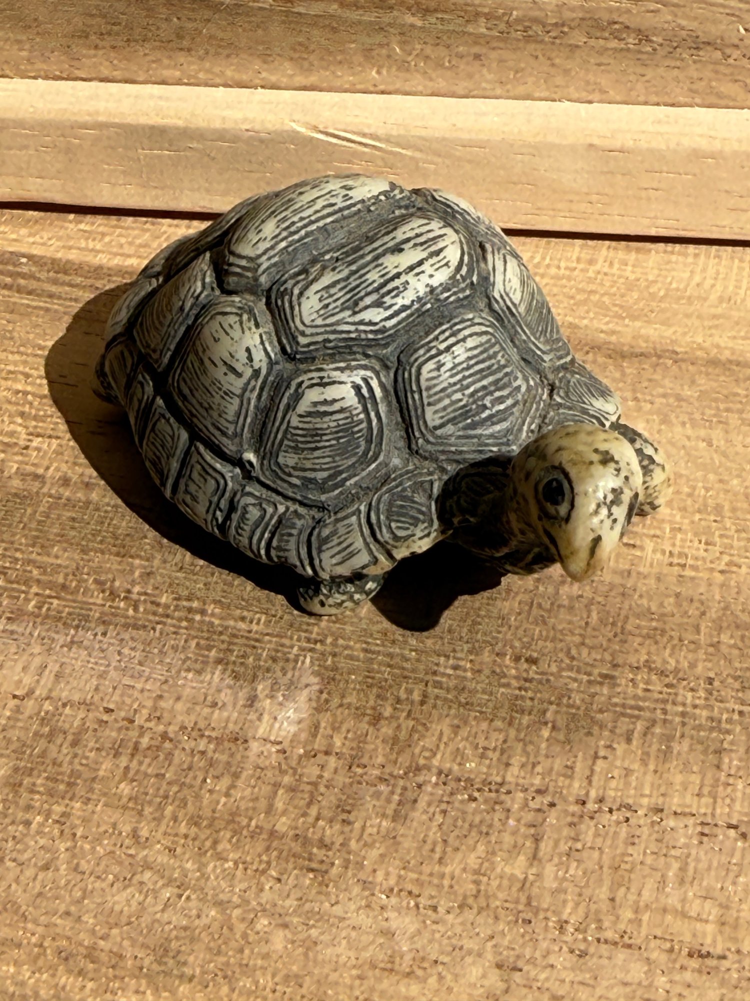 small decorative tortoise figurine, similar to those crafted from resin. Figurine is 2 1/2 inches long and 1 inch high.