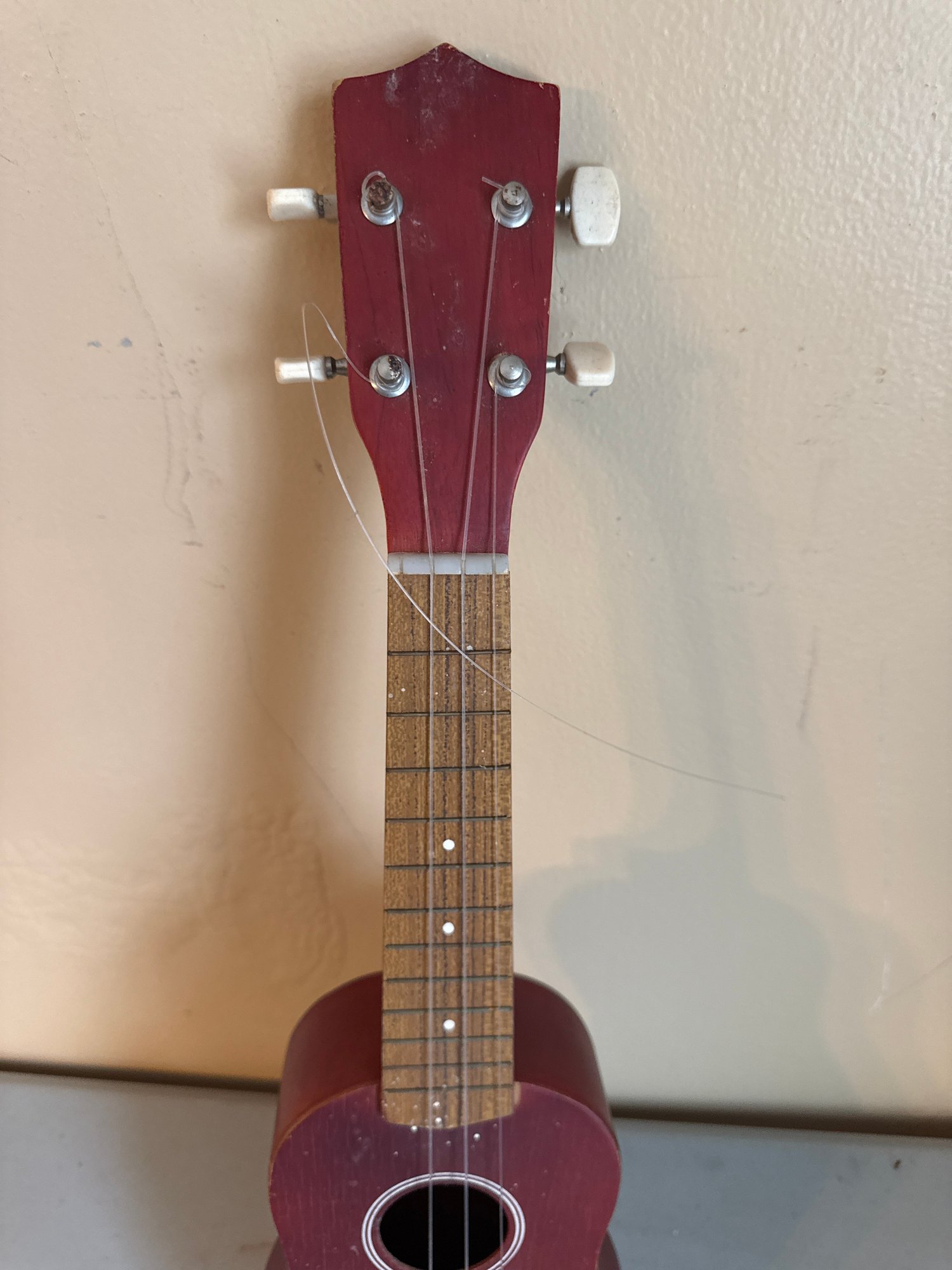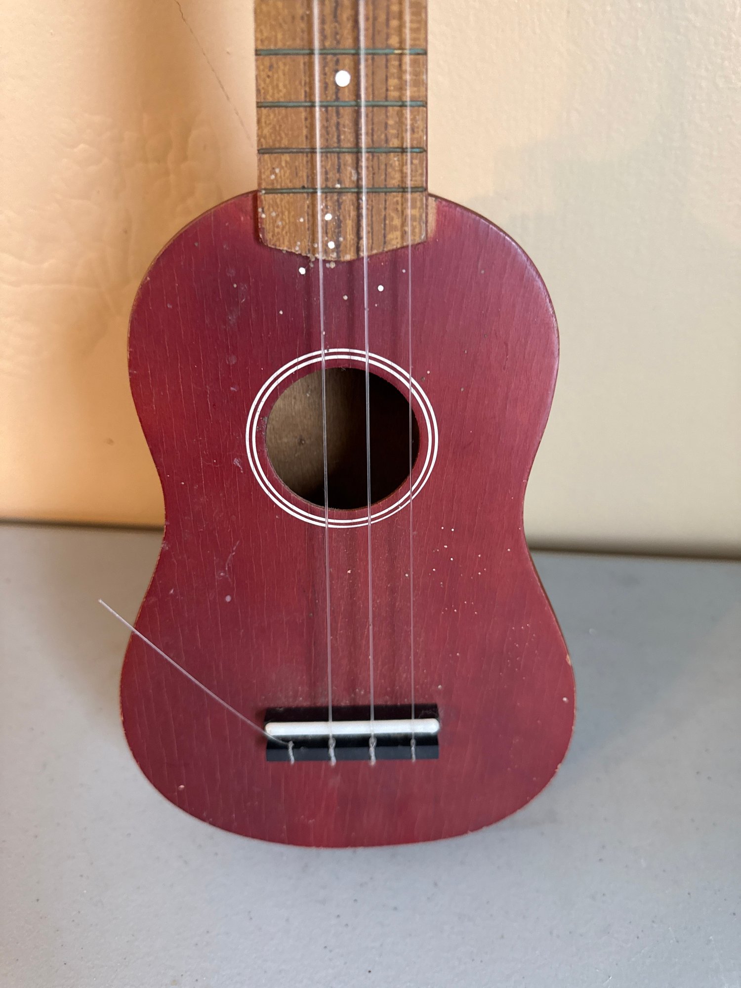 Small guitar is 21 1/2 inches long and 6 1/2 inches wide