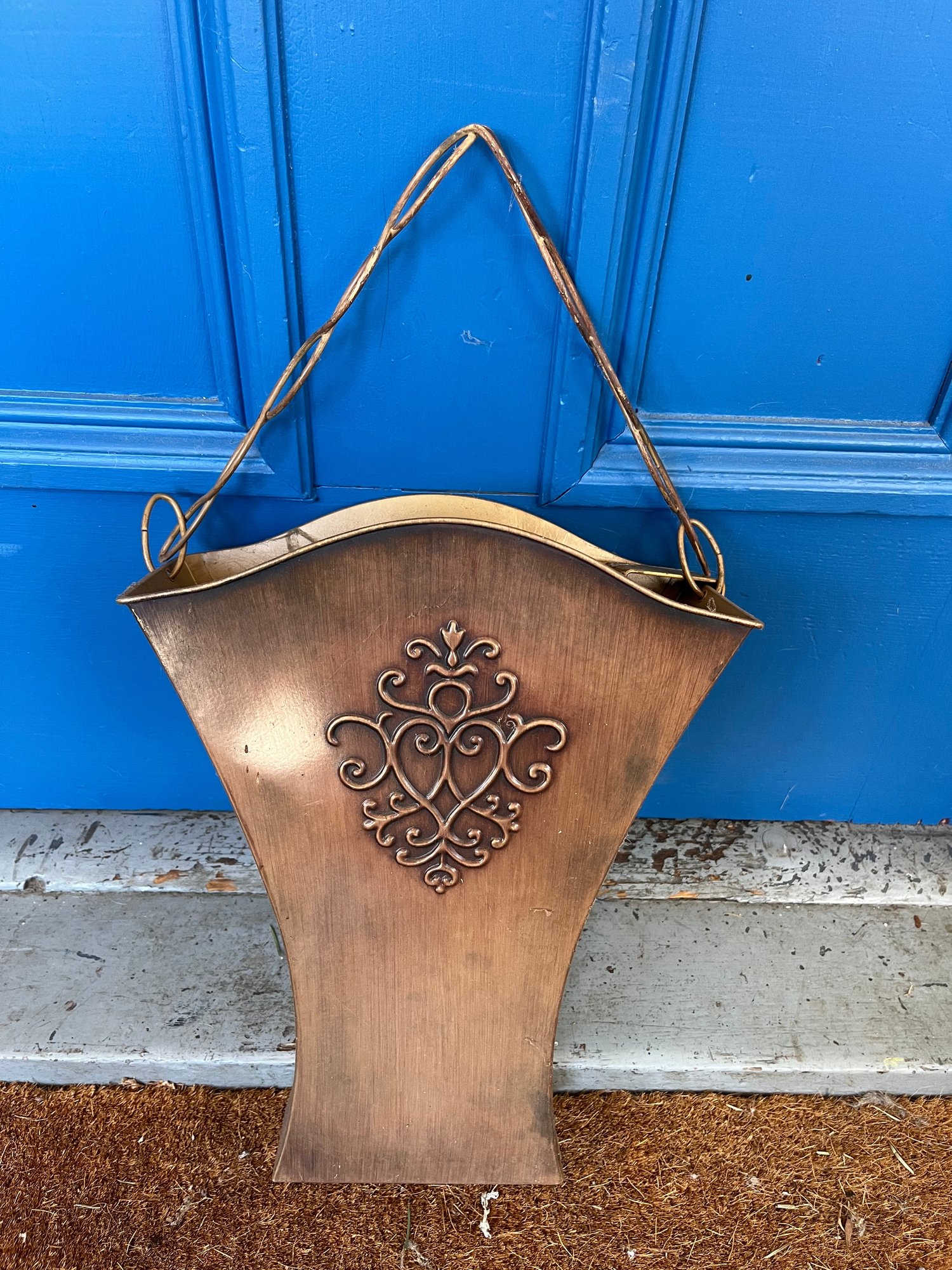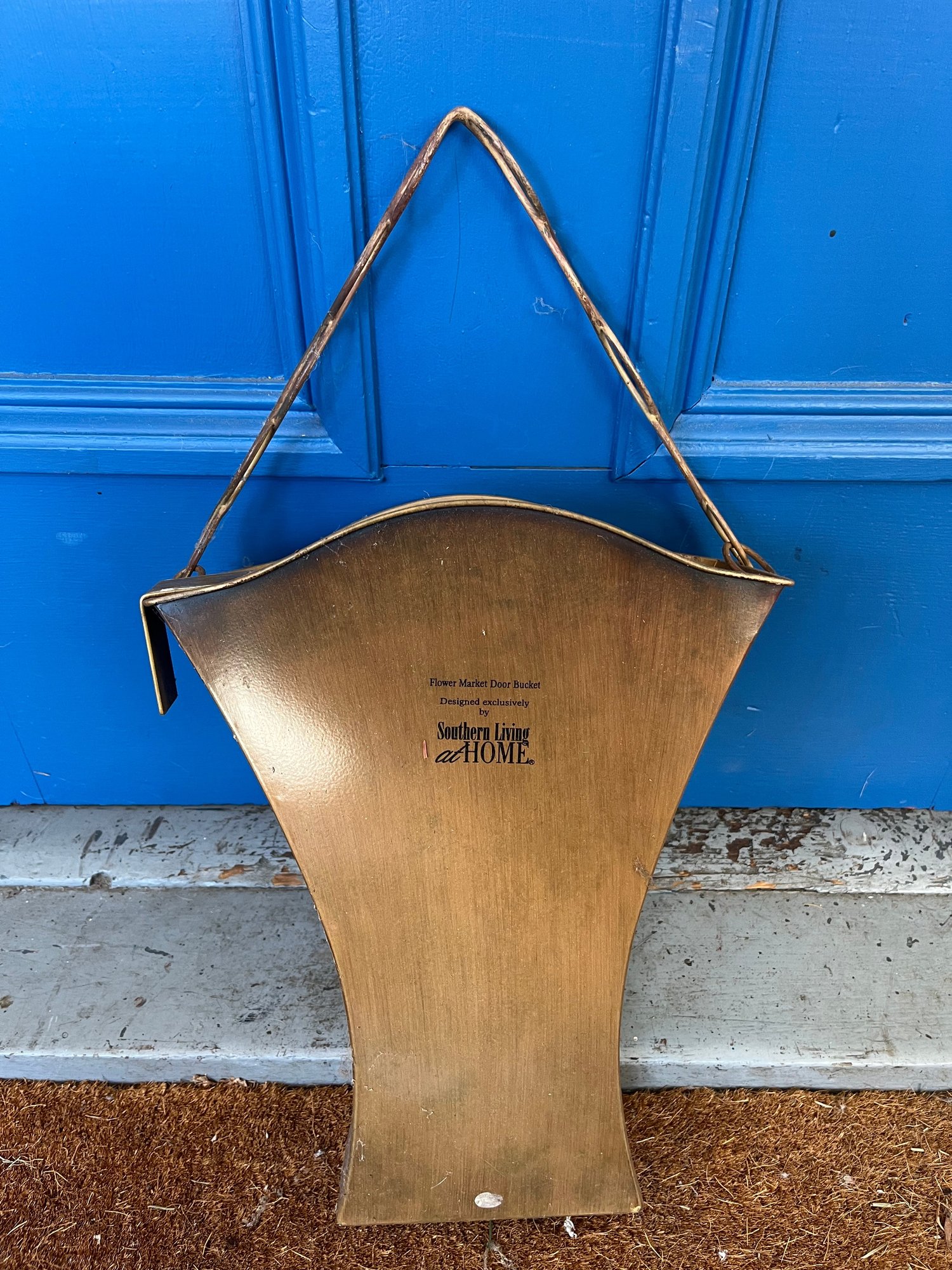 Southern Living at Home Flower Market Door Bucket, also referred to as a wall pocket. Designed to hang on a door or wall, it is typically used for displaying floral arrangements.
