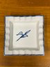 Square shape with a scalloped or gadrooned edge and a blue bird central graphic.
