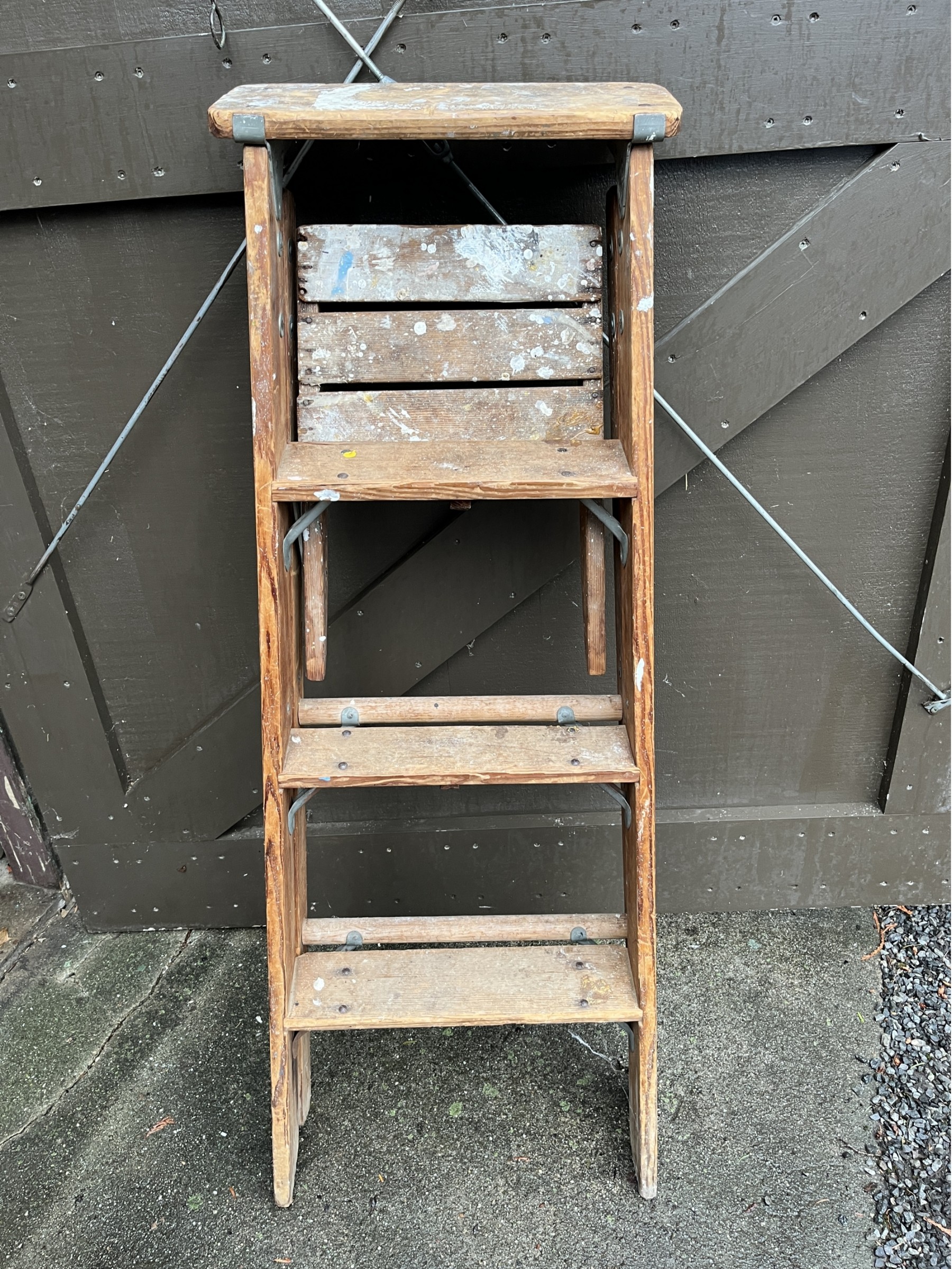 Wooden step ladder. Three steps. Total height is 48 inches.