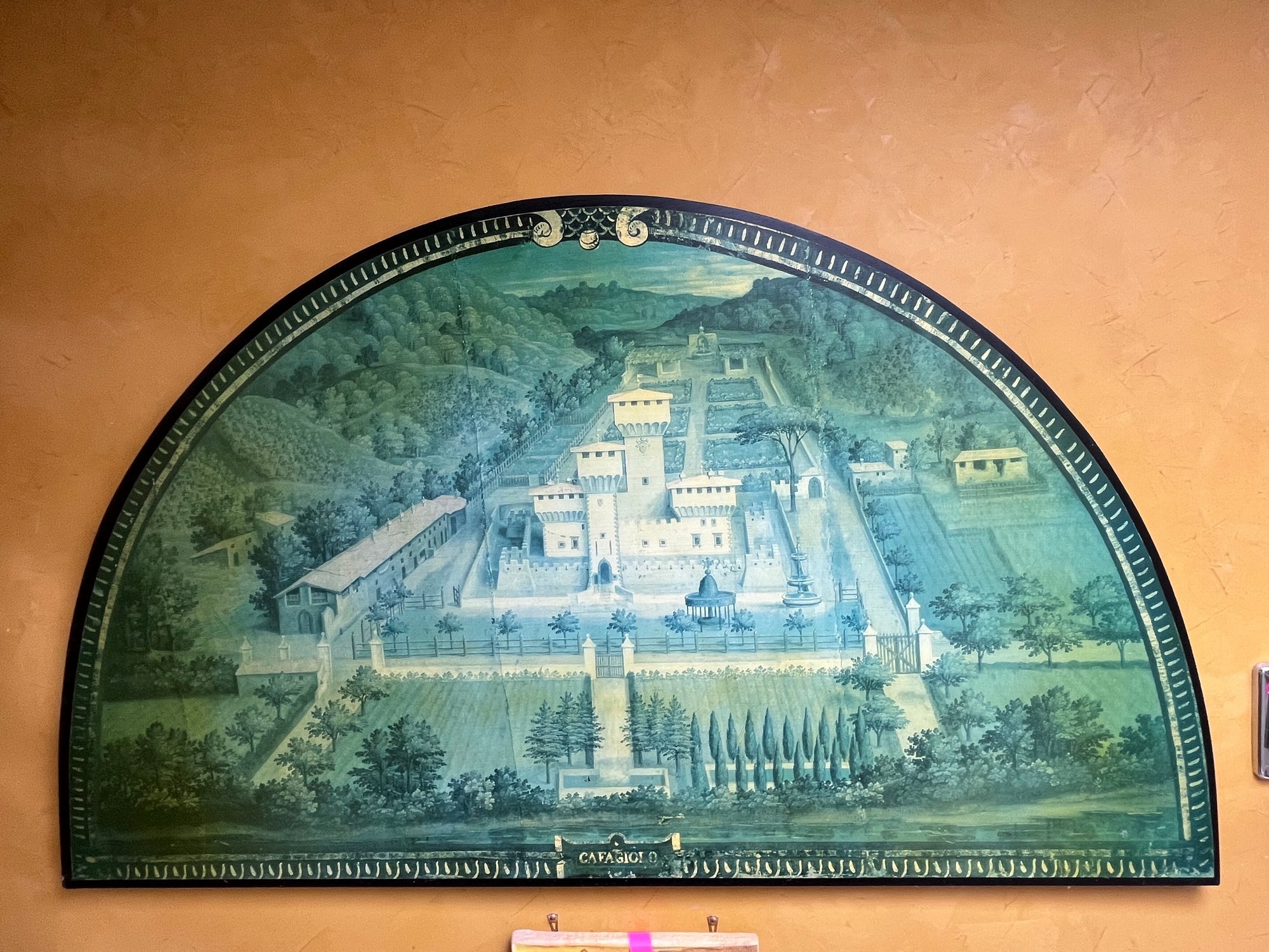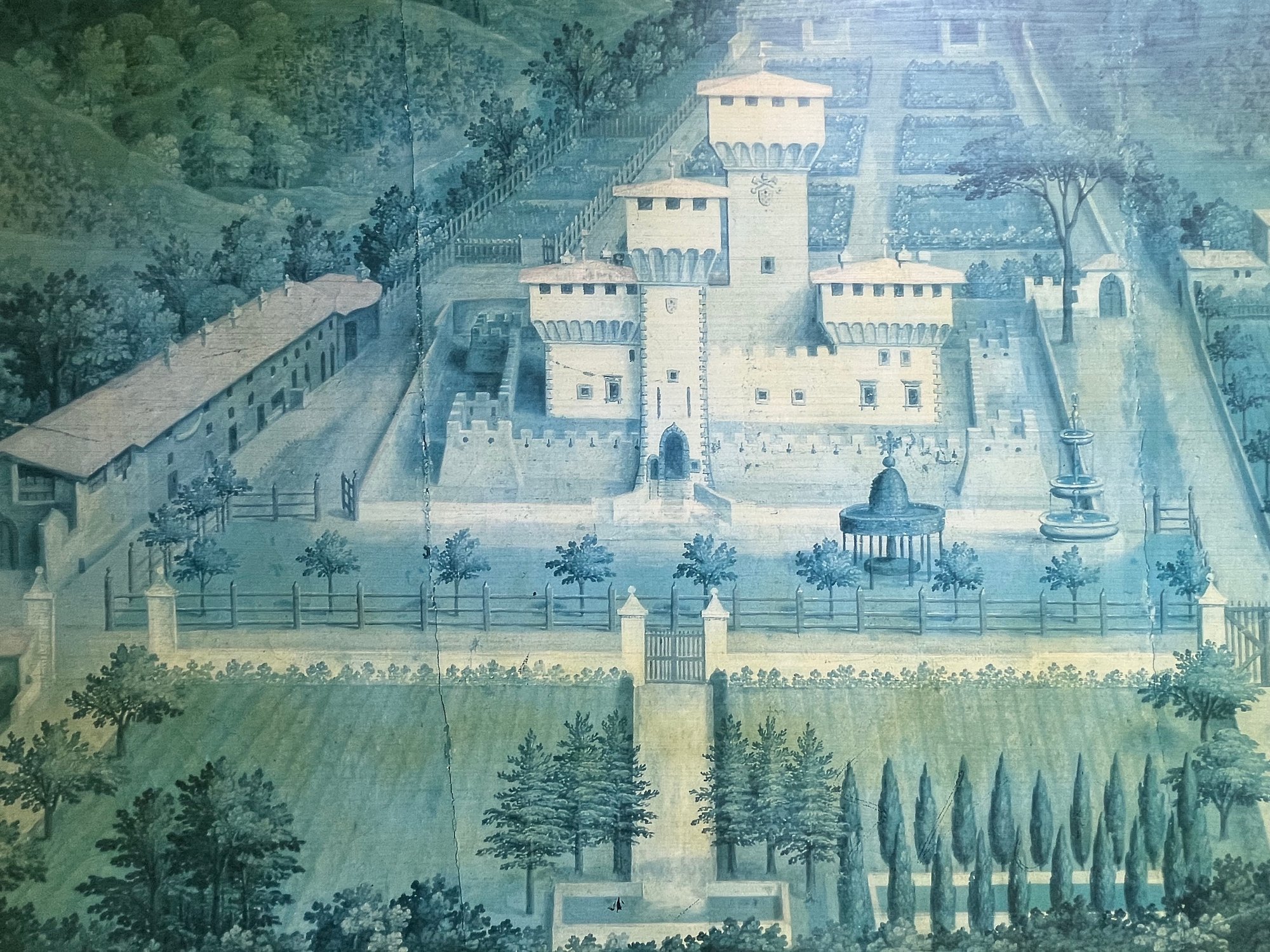 This fresco was painted by Flemish artist Giusto Utens between 1599 and 1602.