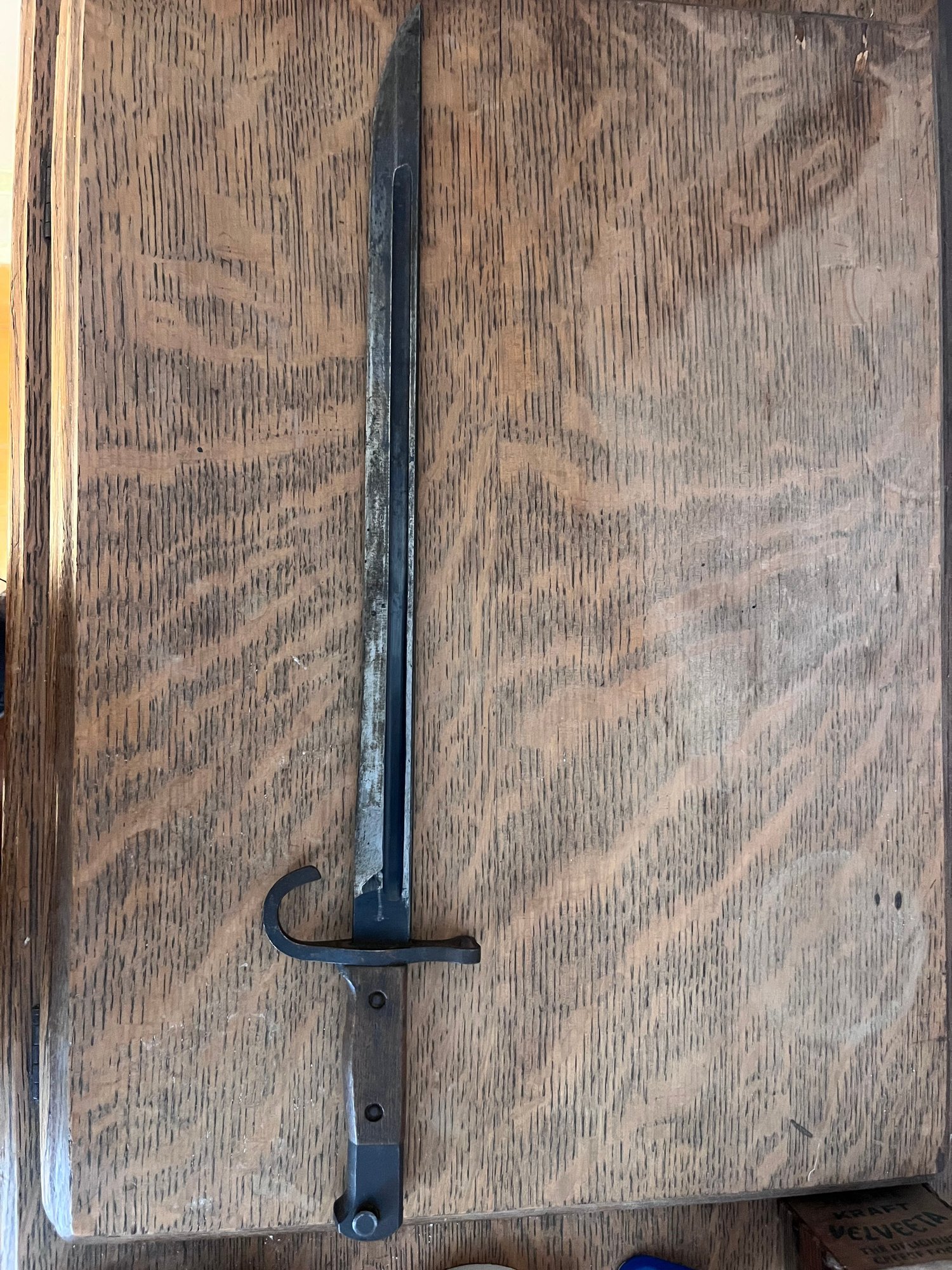 Item appears to be a Japanese Type 30 bayonet, which was the standard bayonet for the Imperial Japanese Army from its introduction in 1897 until the end of World War II in 1945.