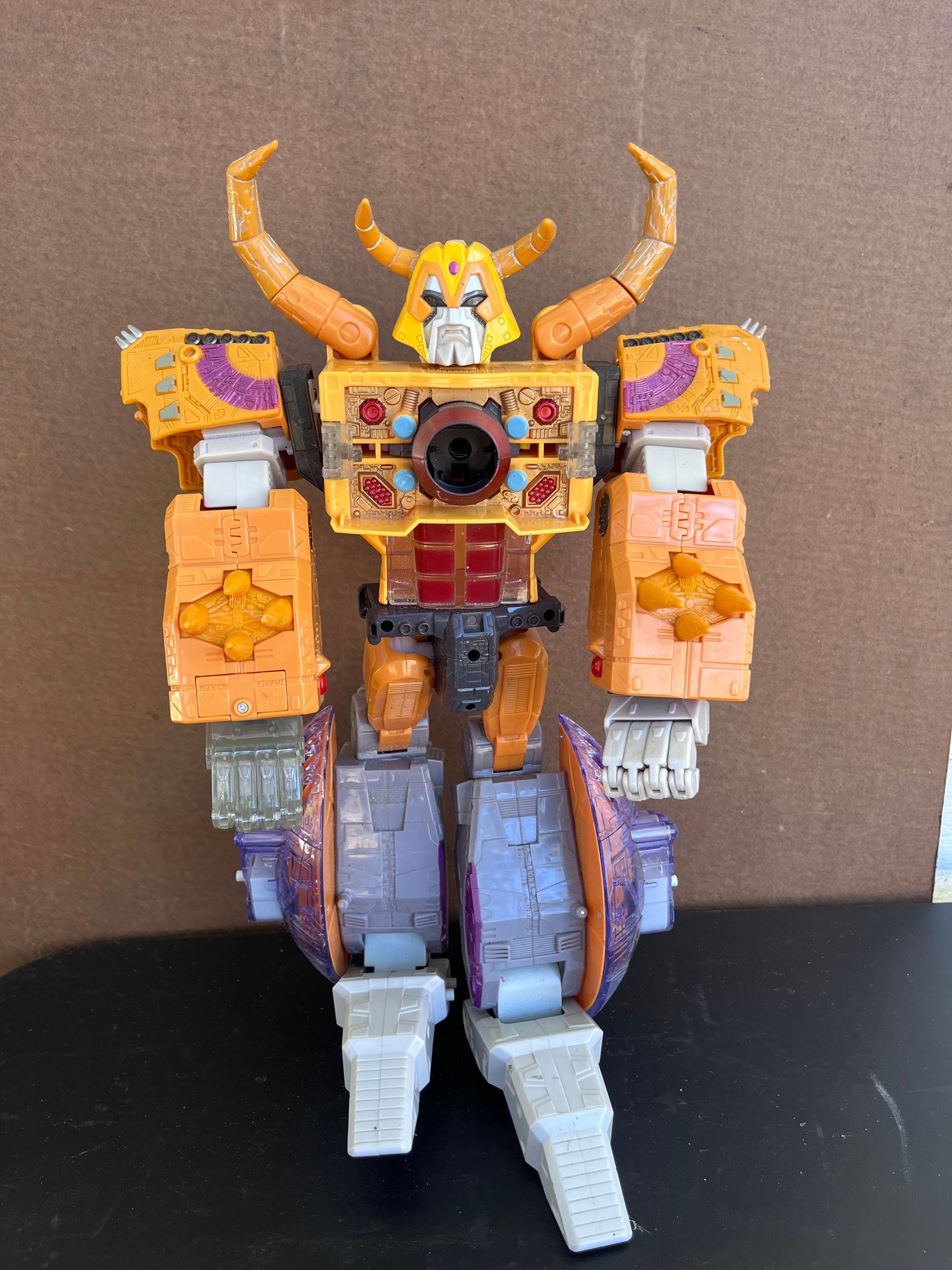 The character is known for transforming into a planet, and this figure includes planetary ring wings and various Mini-Con ports.