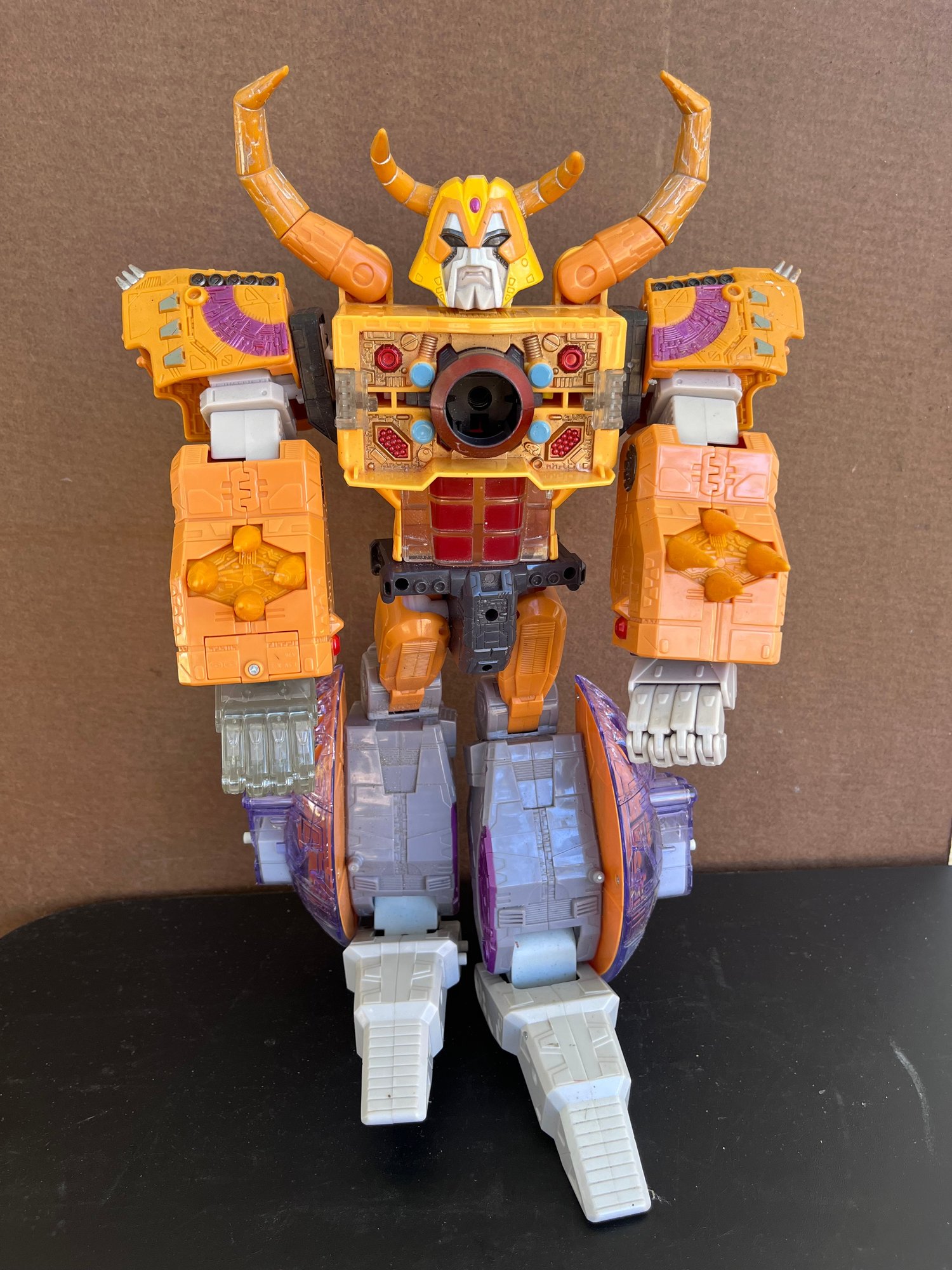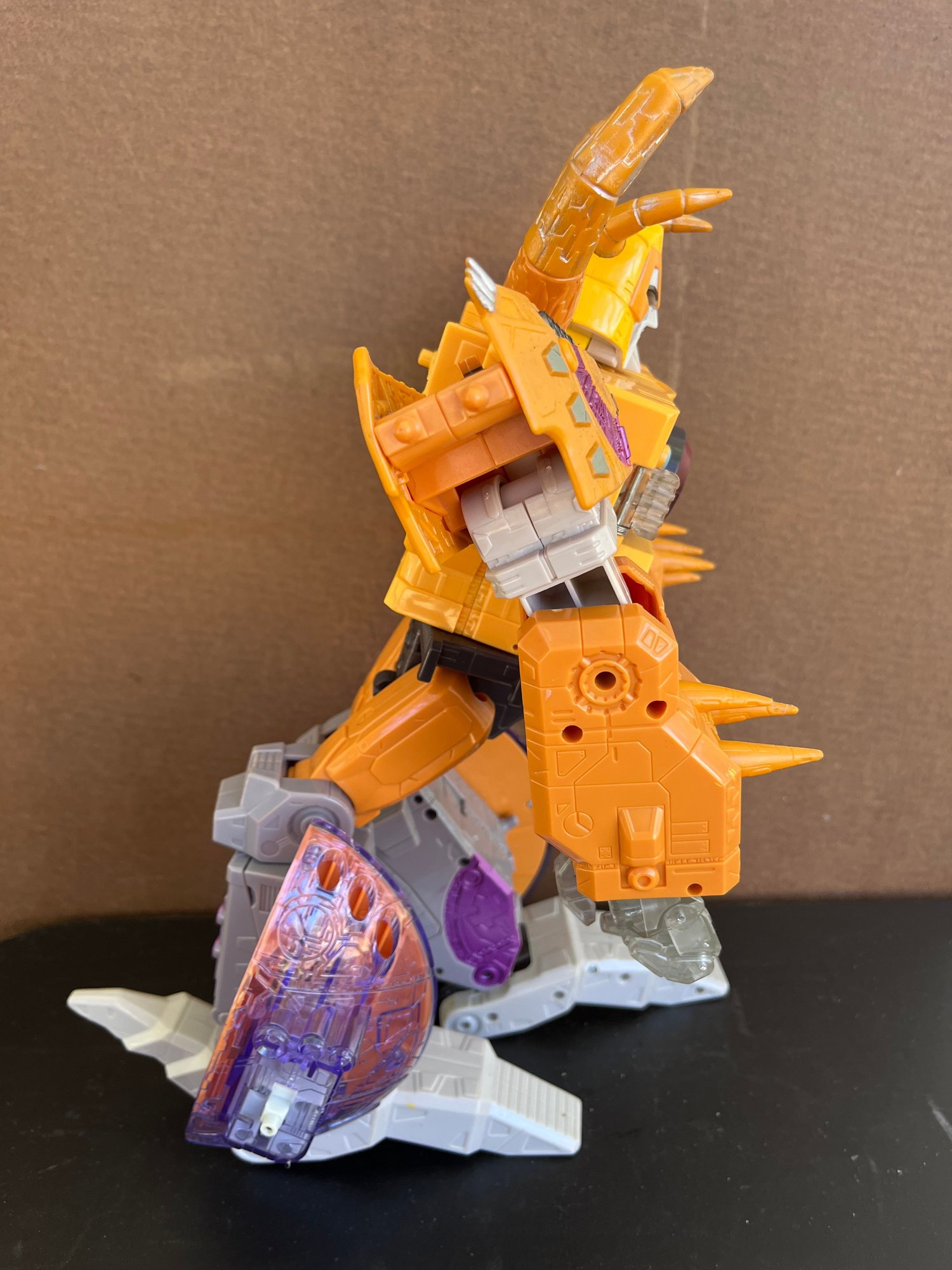 It is a large-scale, "Supreme Class" figure featuring a distinctive orange and yellow color scheme.