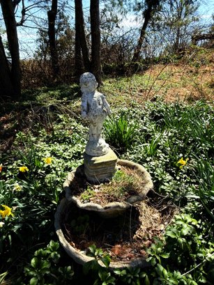 Precious two tier birdbath displays a little girl showing off her pretty dress on top.