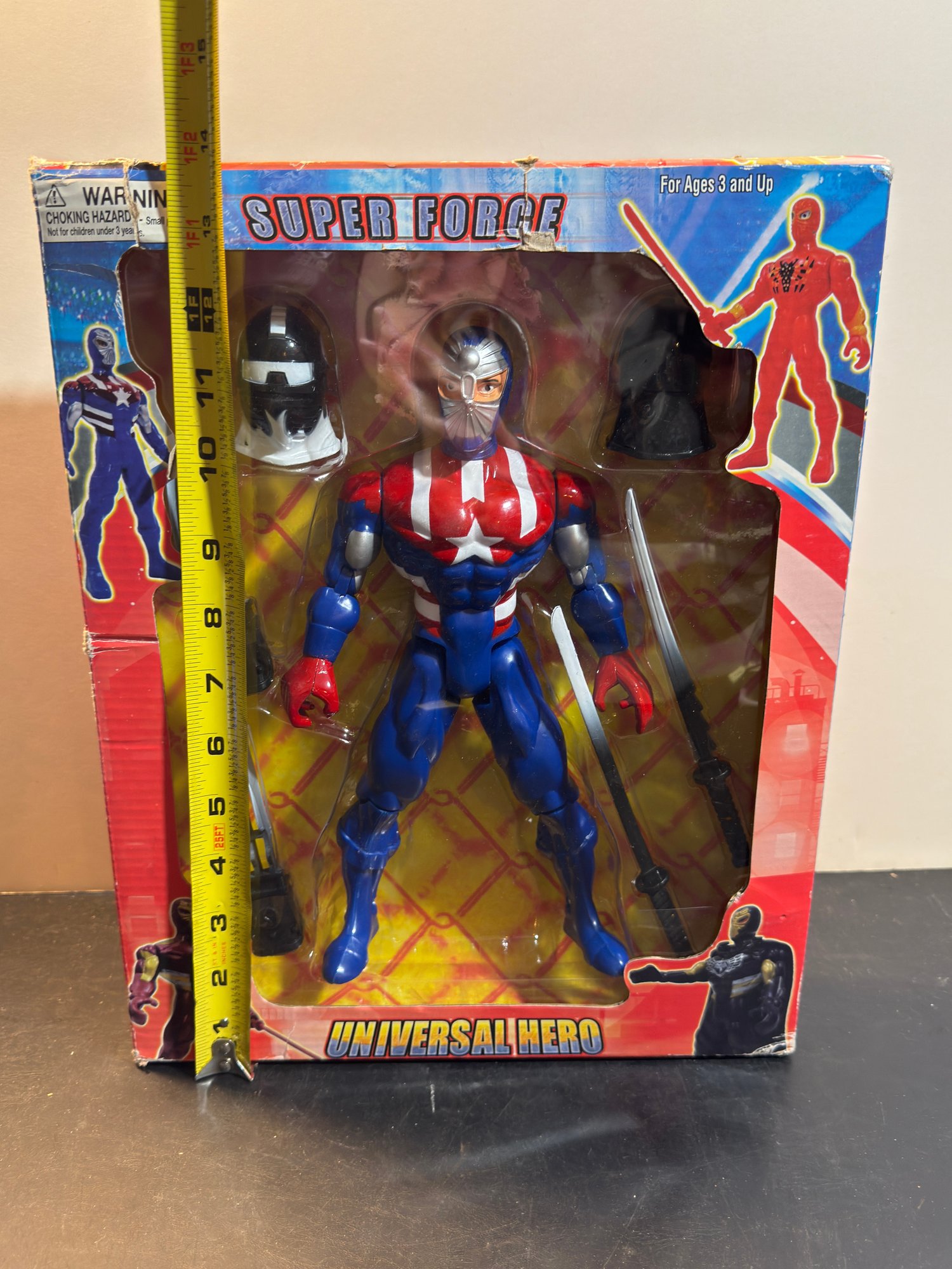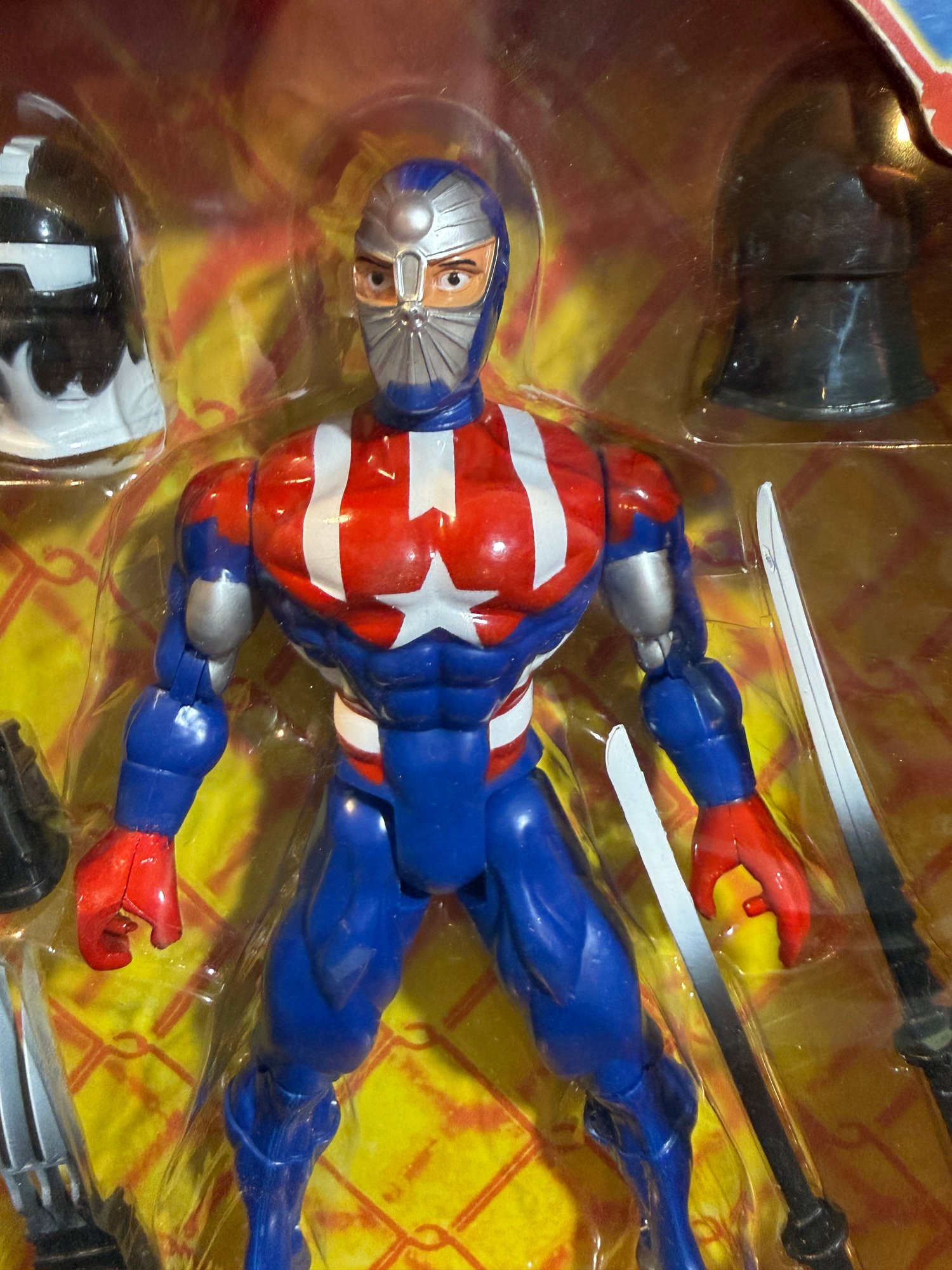 As shown - Includes interchangeable accessories such as helmets and claw weapons.
