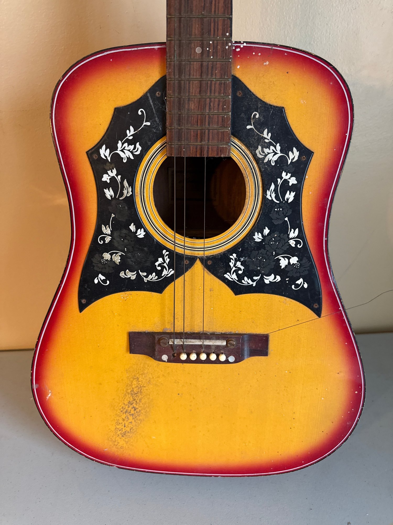 Guitar is 40 inches long and 15 inches wide