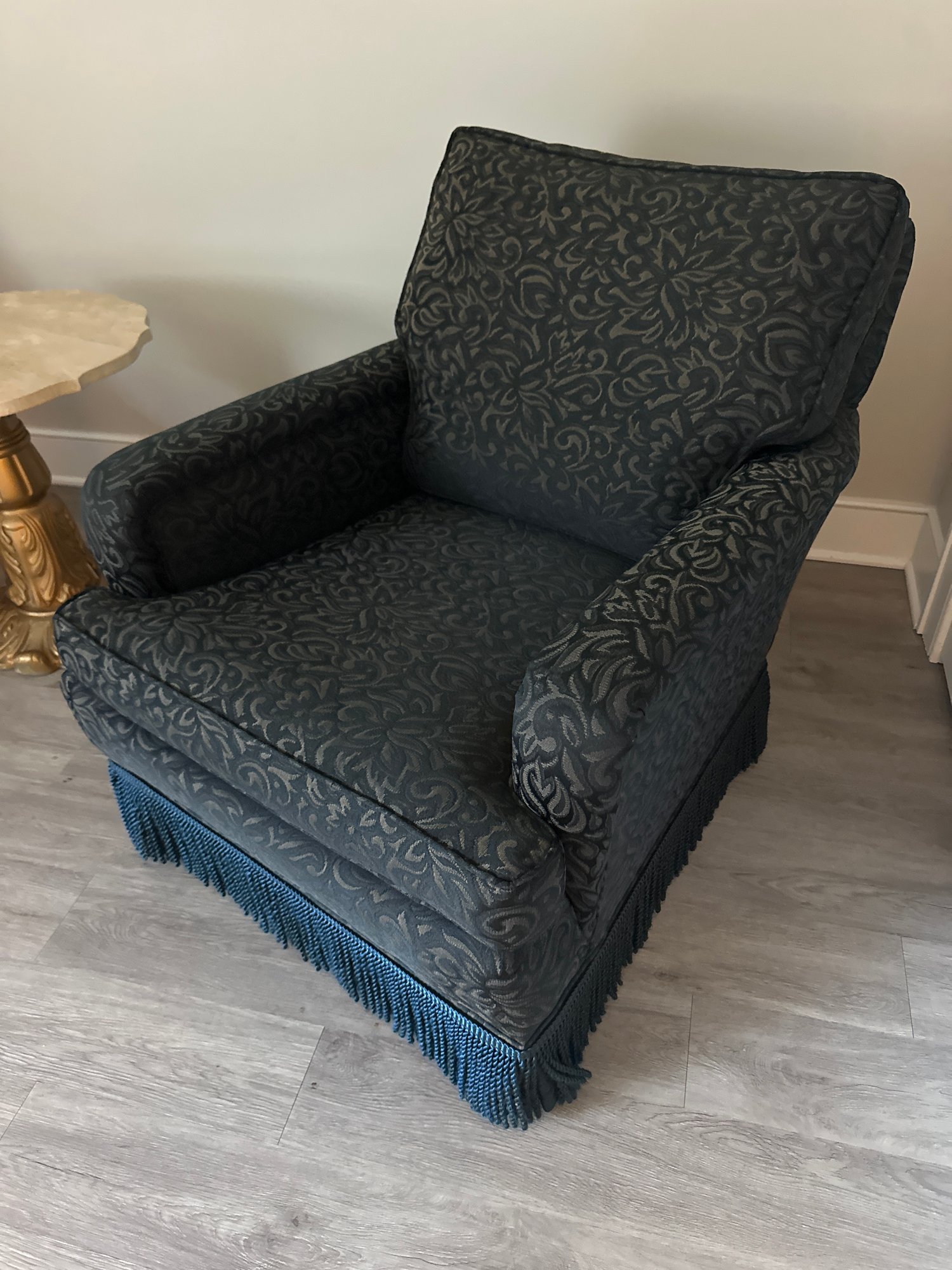 Chair is 33 inches wide, 37 inches deep, 18 inches high two seats and backrest is 31 inches high.