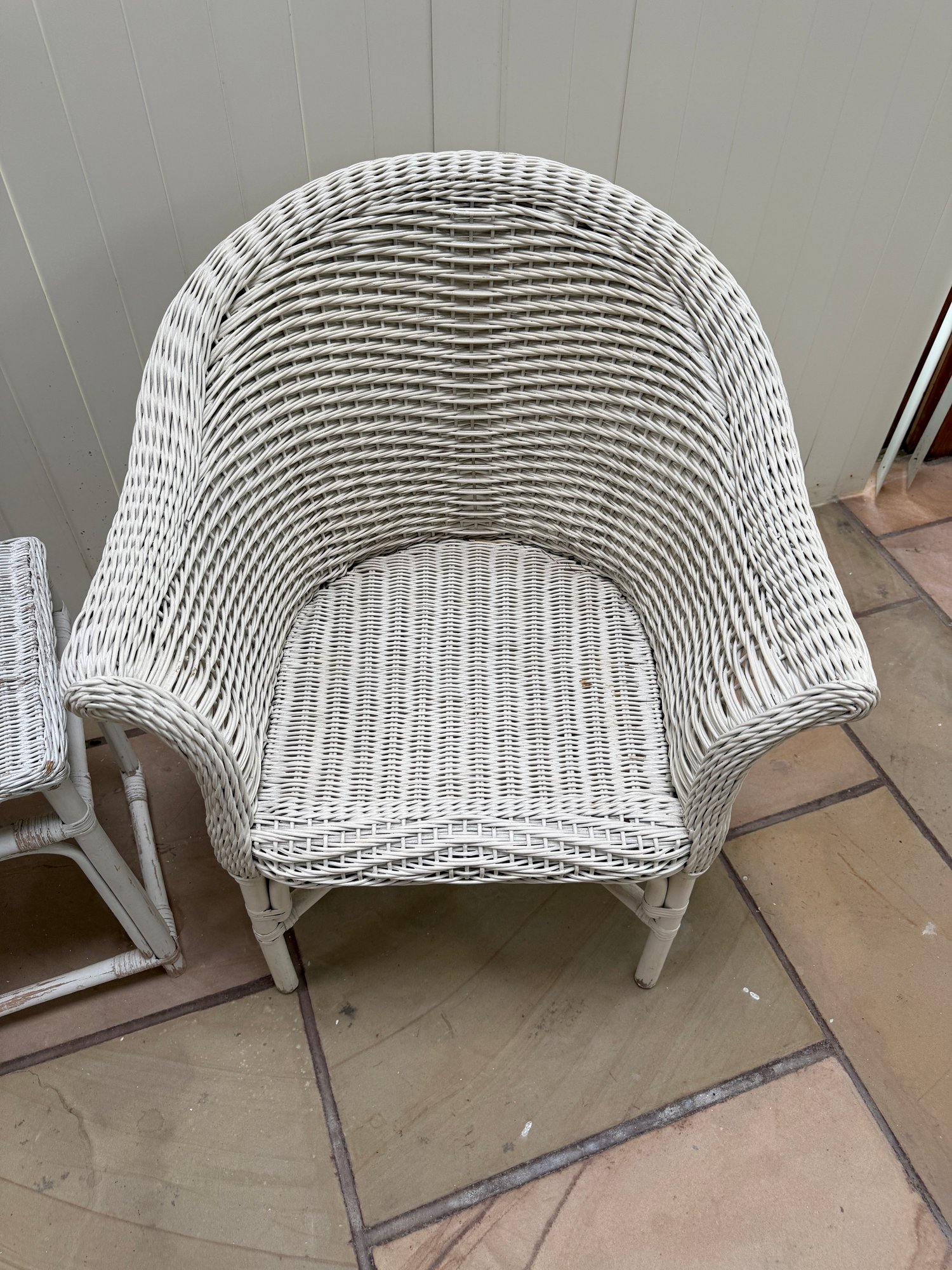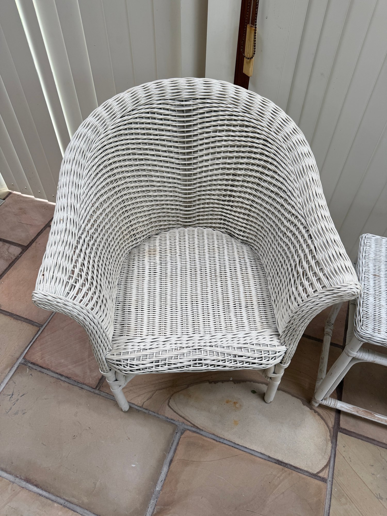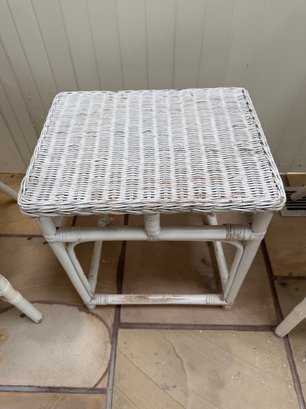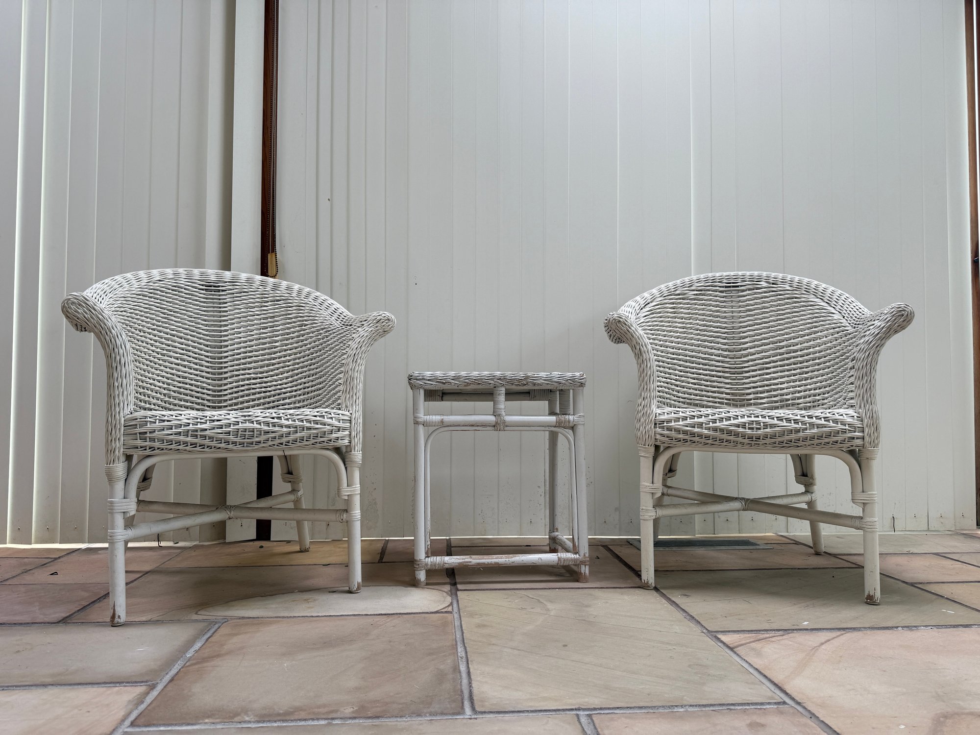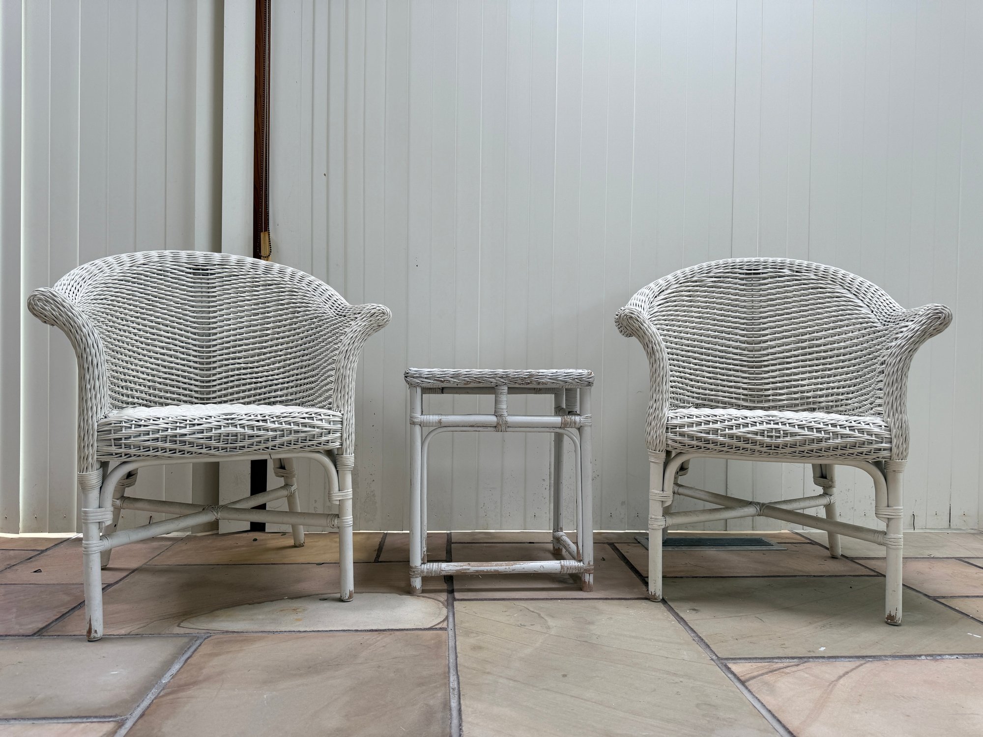 Vintage 3 Piece Wicker Set. That includes two rounded back chairs and a table.