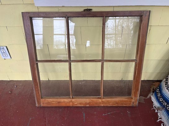 Vintage 6-pane window sash featuring a white wooden frame and glass panels.