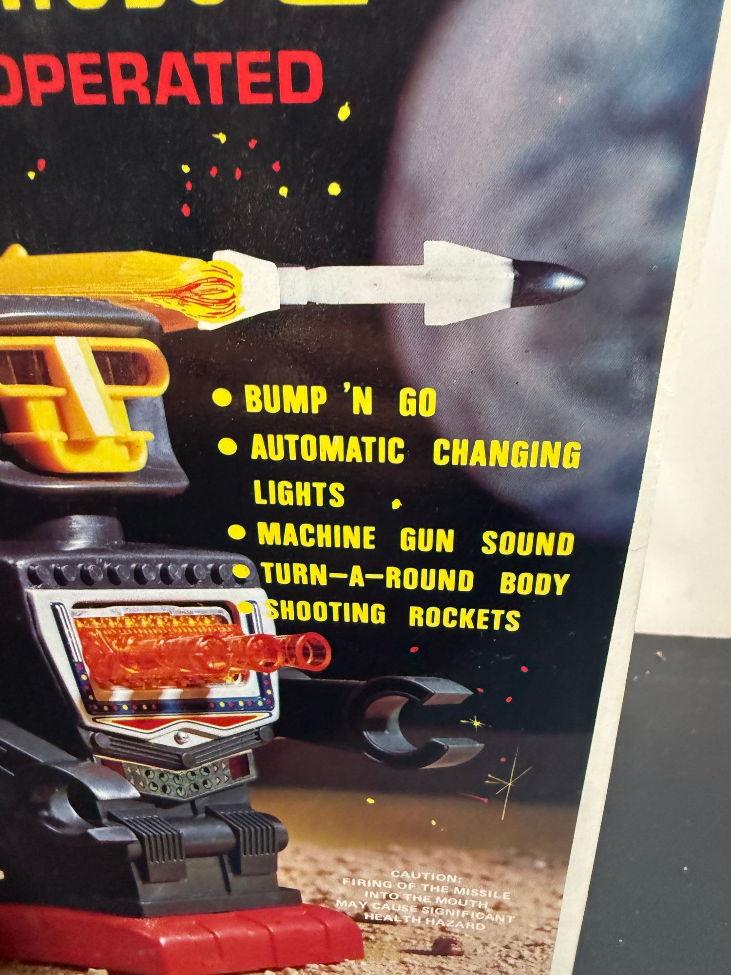 Vintage “Action Robot” Battery Operated Space Toy – With Original Box & Rockets