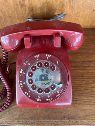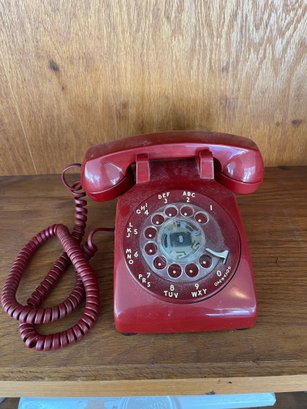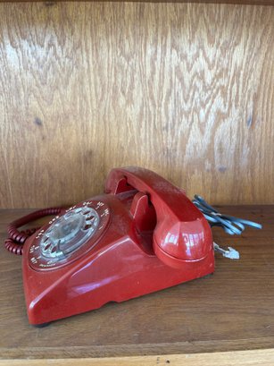 Iconic 1950s-1970s red plastic housing. Rotary dial with classic metal finger.