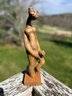 Vintage Austin Productions Inc. figural sculpture dated 1971, depicting an elegant abstract pregnant woman holding flowers. Classic elongated modernist form with textured stone-look finish mounted on original wood base.