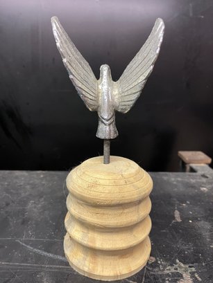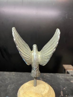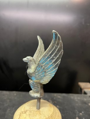 vintage automotive mascot or hood ornament featuring an eagle design, commonly known as a "flying eagle" or "winged victory" trophy topper.