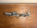 Material and Finish: The model is crafted from solid iron or metal, featuring a distressed black or antique finish for a classic look. The wheels may have rubber tires, and the seat could be made of wood.