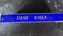 vintage, ceramic ashtray featuring the insignia of the Far East Air Forces from the World War II era. It prominently displays the emblems for the 5th and 13th Air Forces, along with the Far East Air Forces command patch. The ashtray is colored with white, blue, and orange glazes and typically measures around 7.5 inches wide.