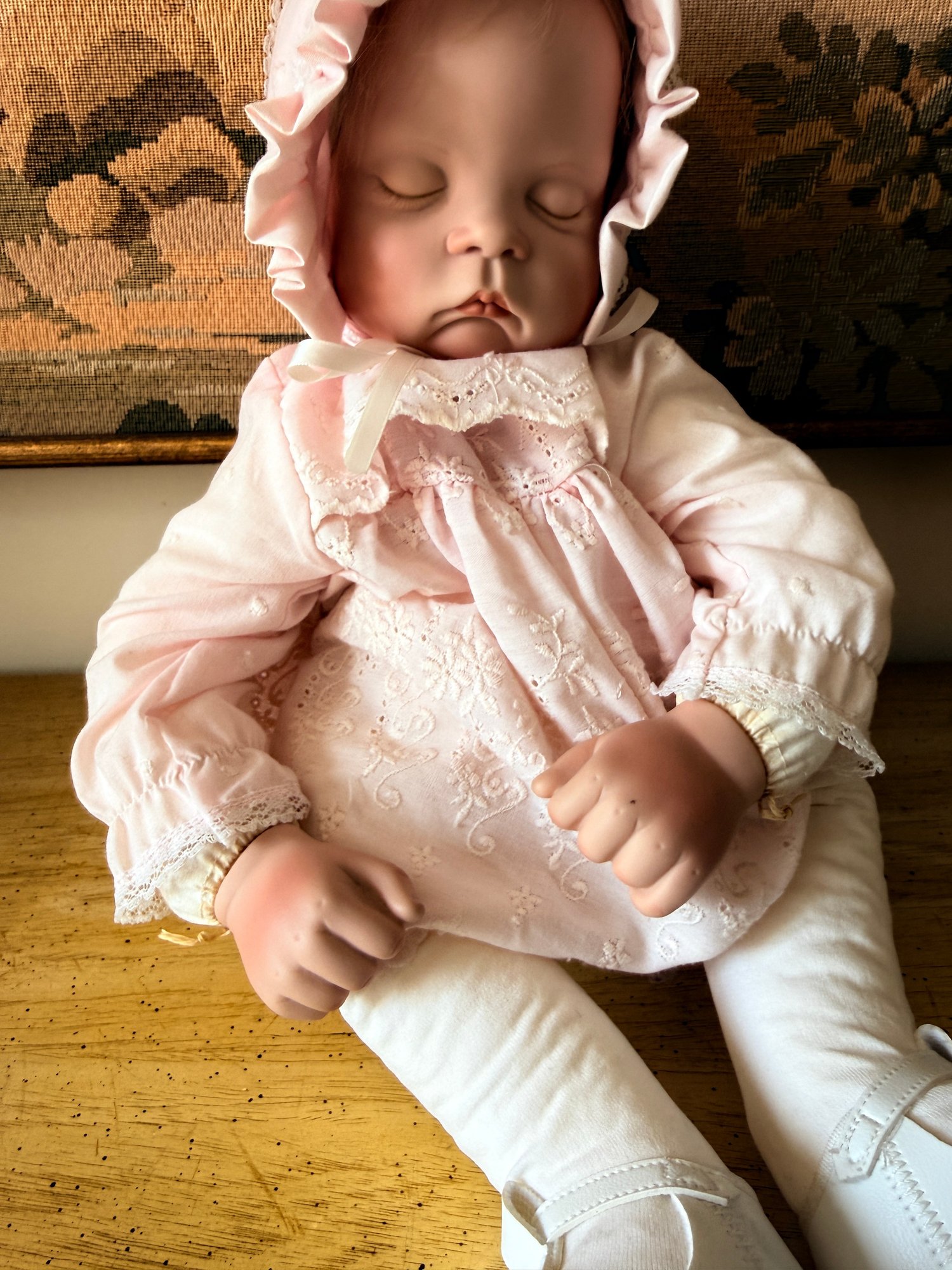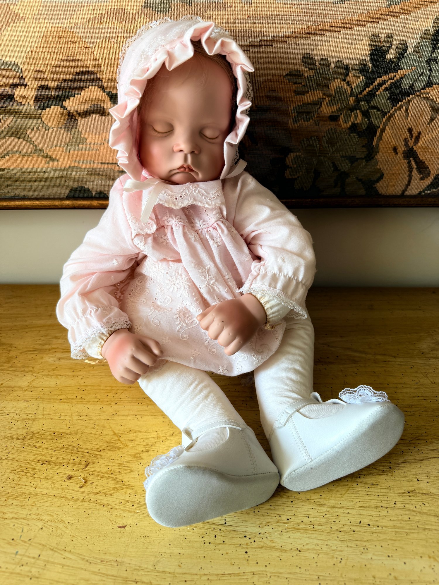 Vintage collectible is a "Sugar Britches" baby doll designed by artist Boots Tyner.
