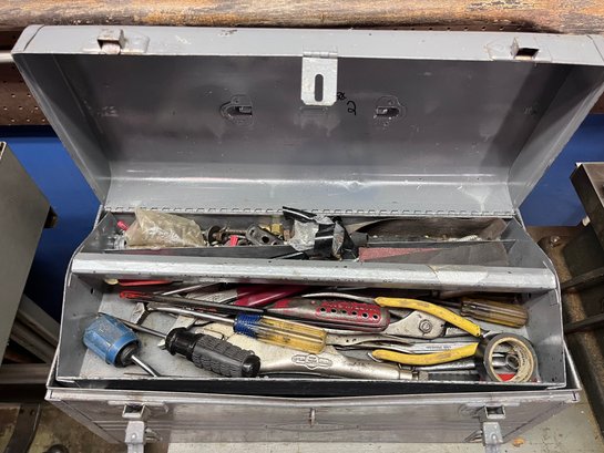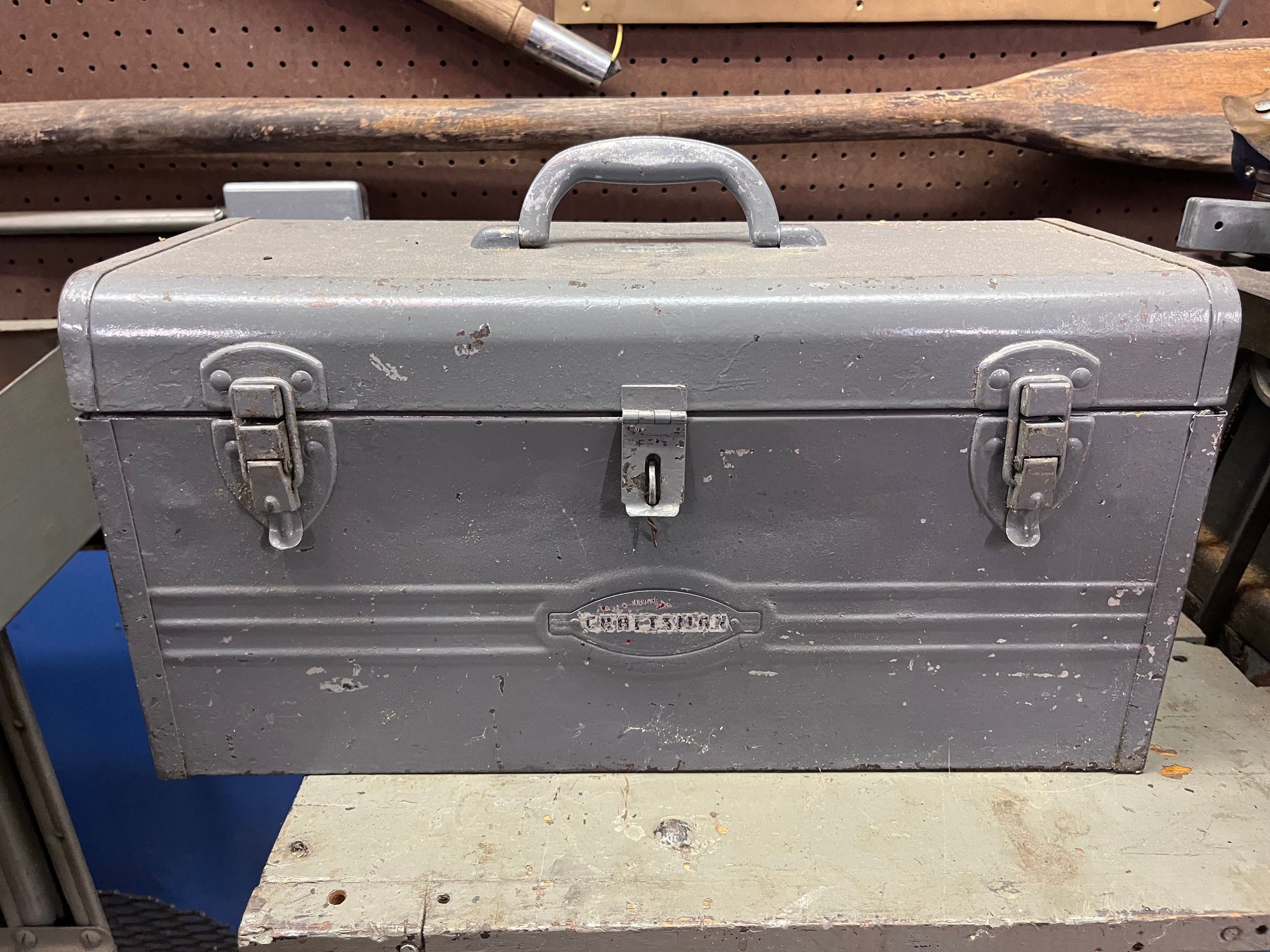 Vintage Craftsman metal tool box, often identified as model 6512, which typically features a steel construction and a mechanics tool tray.