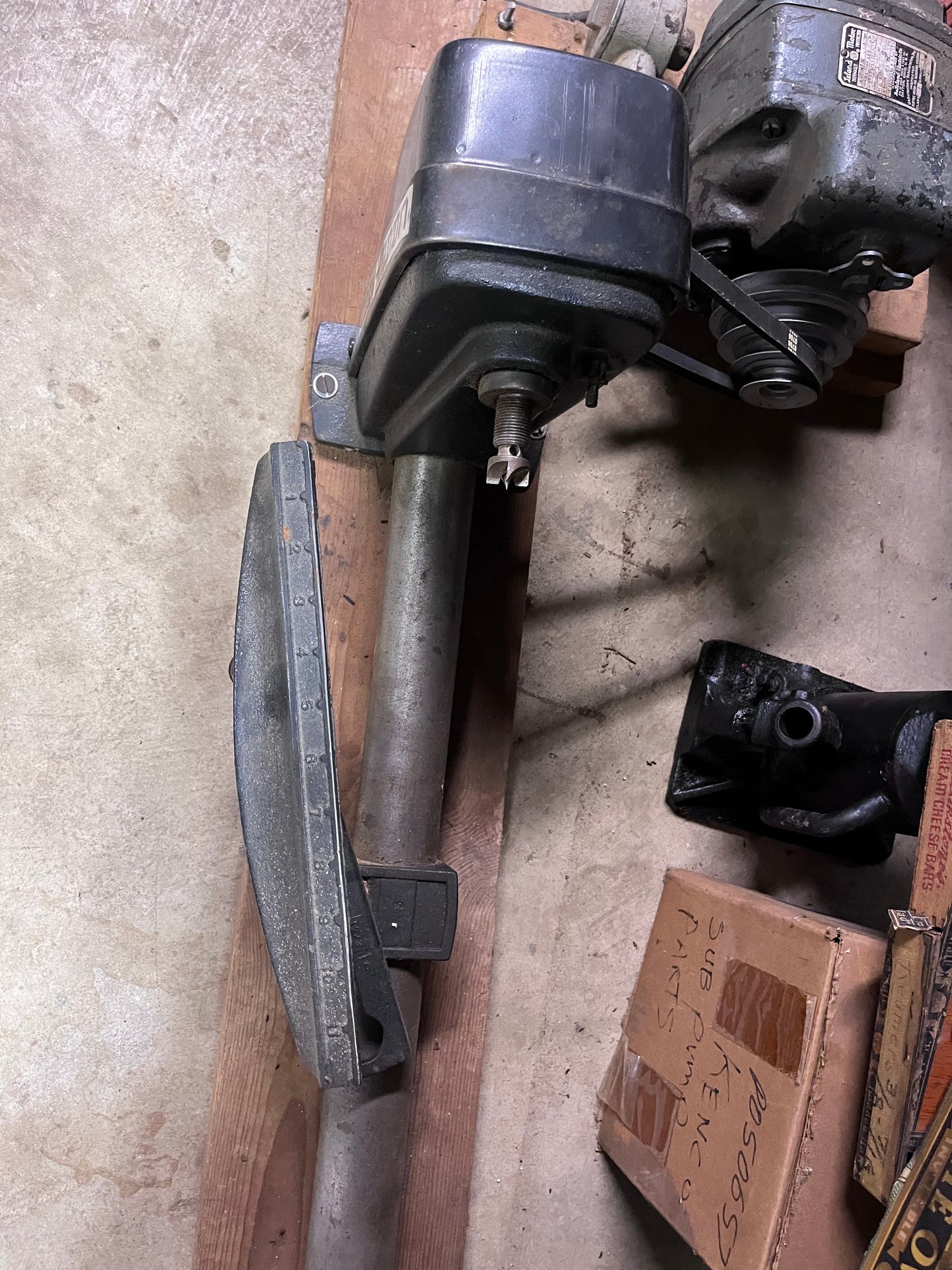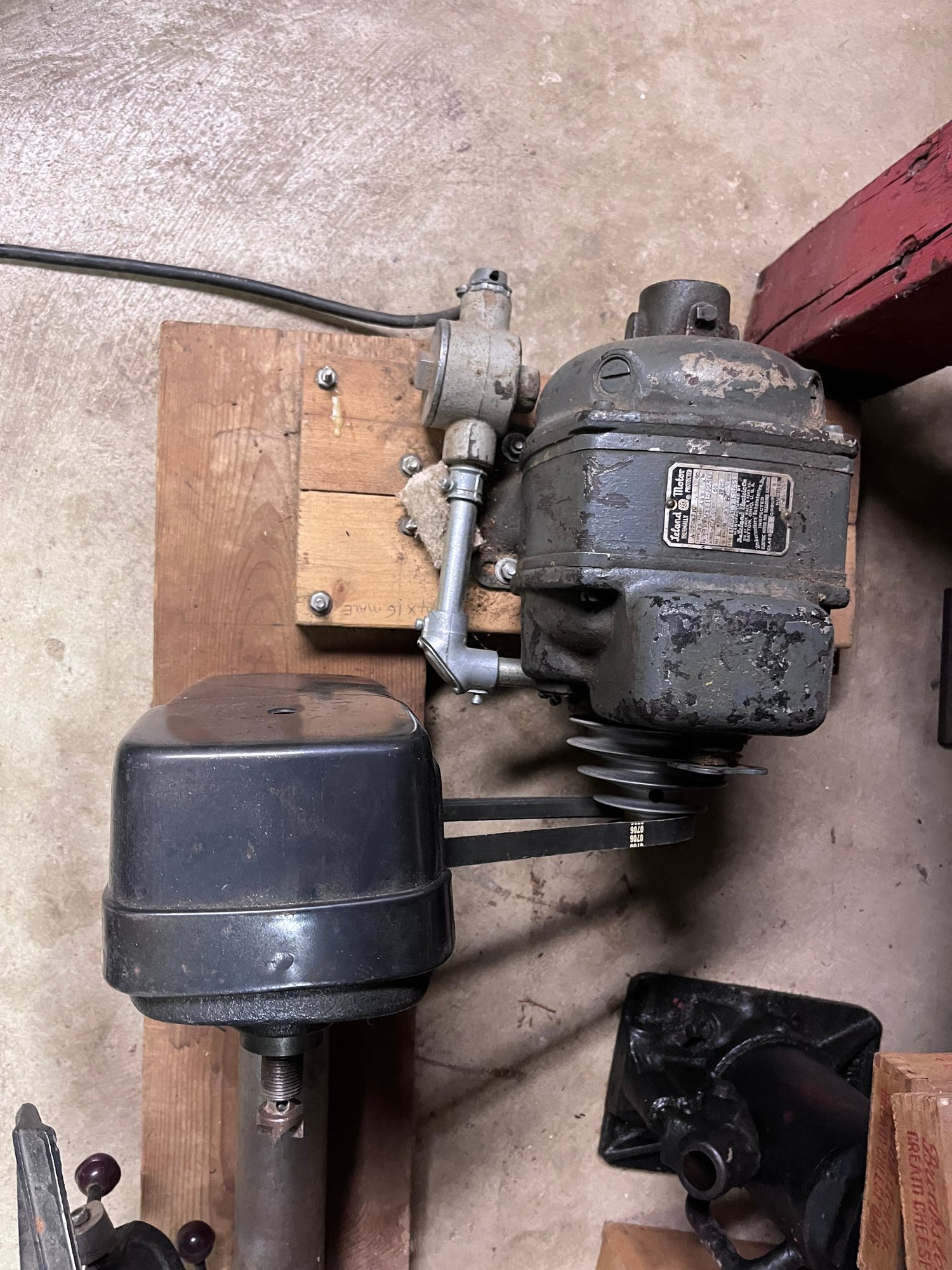 Motor powers on and belt system is installed. Untested under load beyond power-up. Machine has been in storage and would benefit from cleaning, lubrication, belt inspection, alignment check, and general tune-up before use.