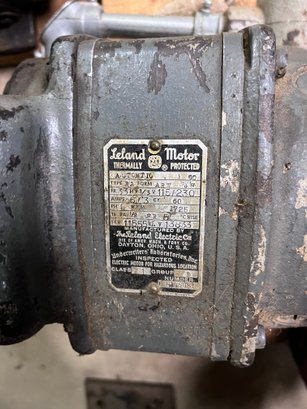 LeLand Motor, thermally protected, dual voltage 115/230V, 1/3 HP, 1725 RPM (per tag).