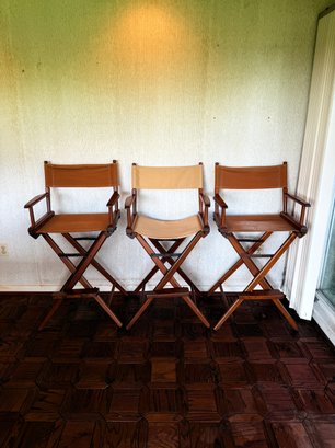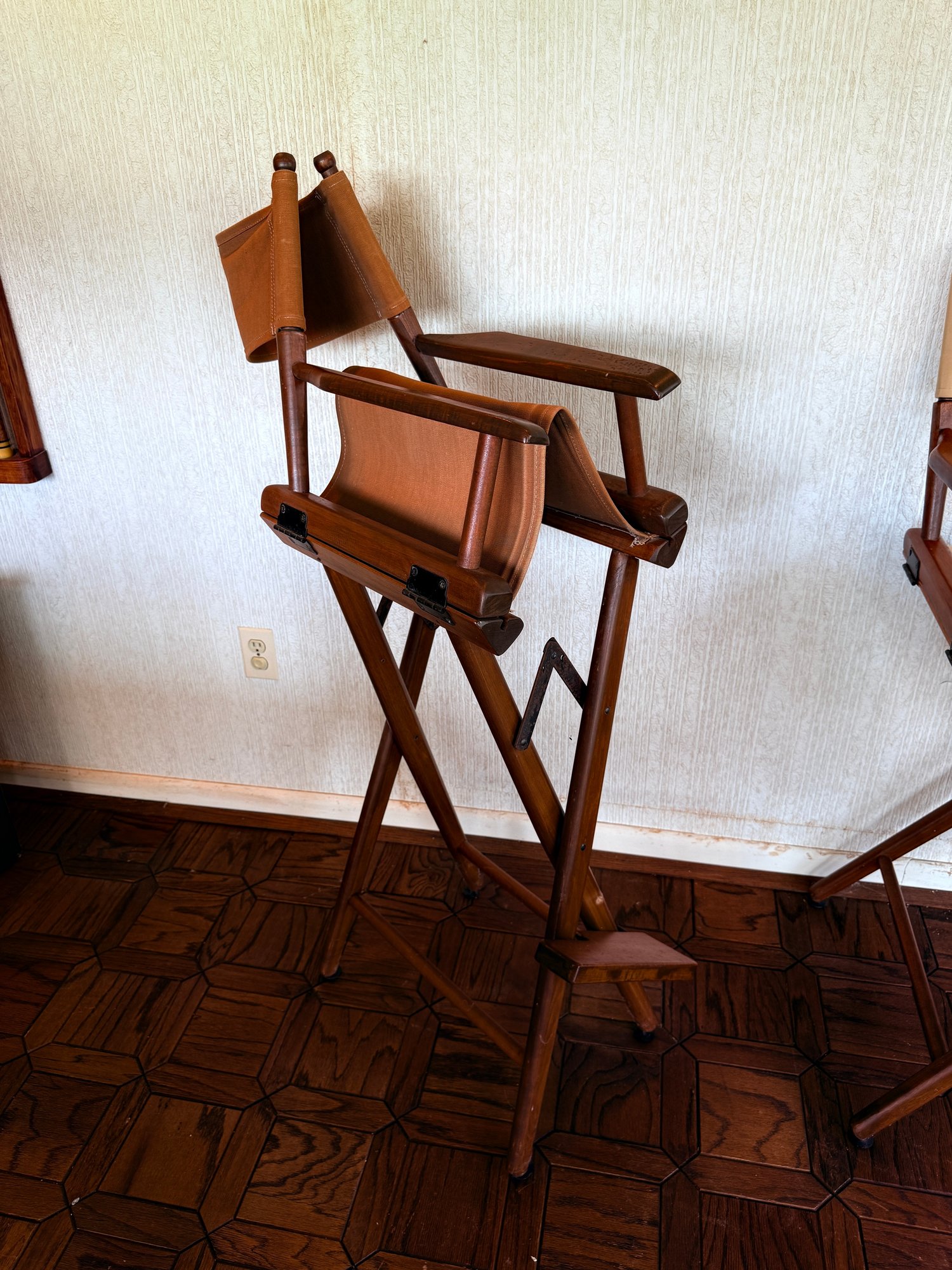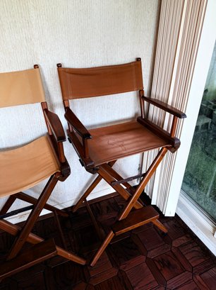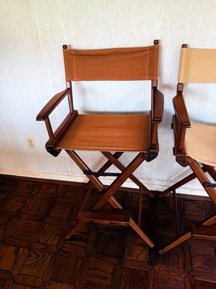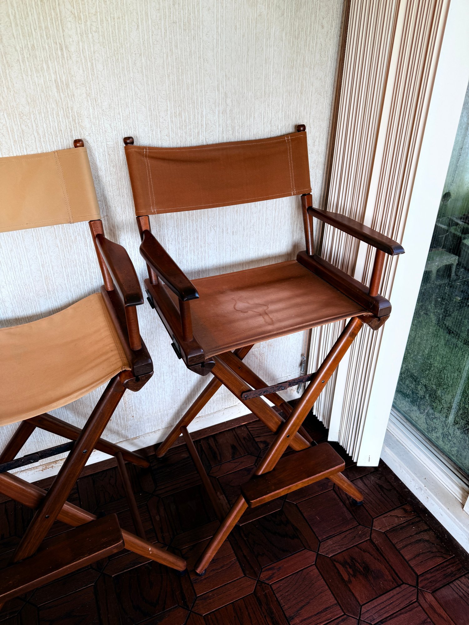 Vintage director's chairs, a portable furniture style featuring a scissor-action folding frame.
