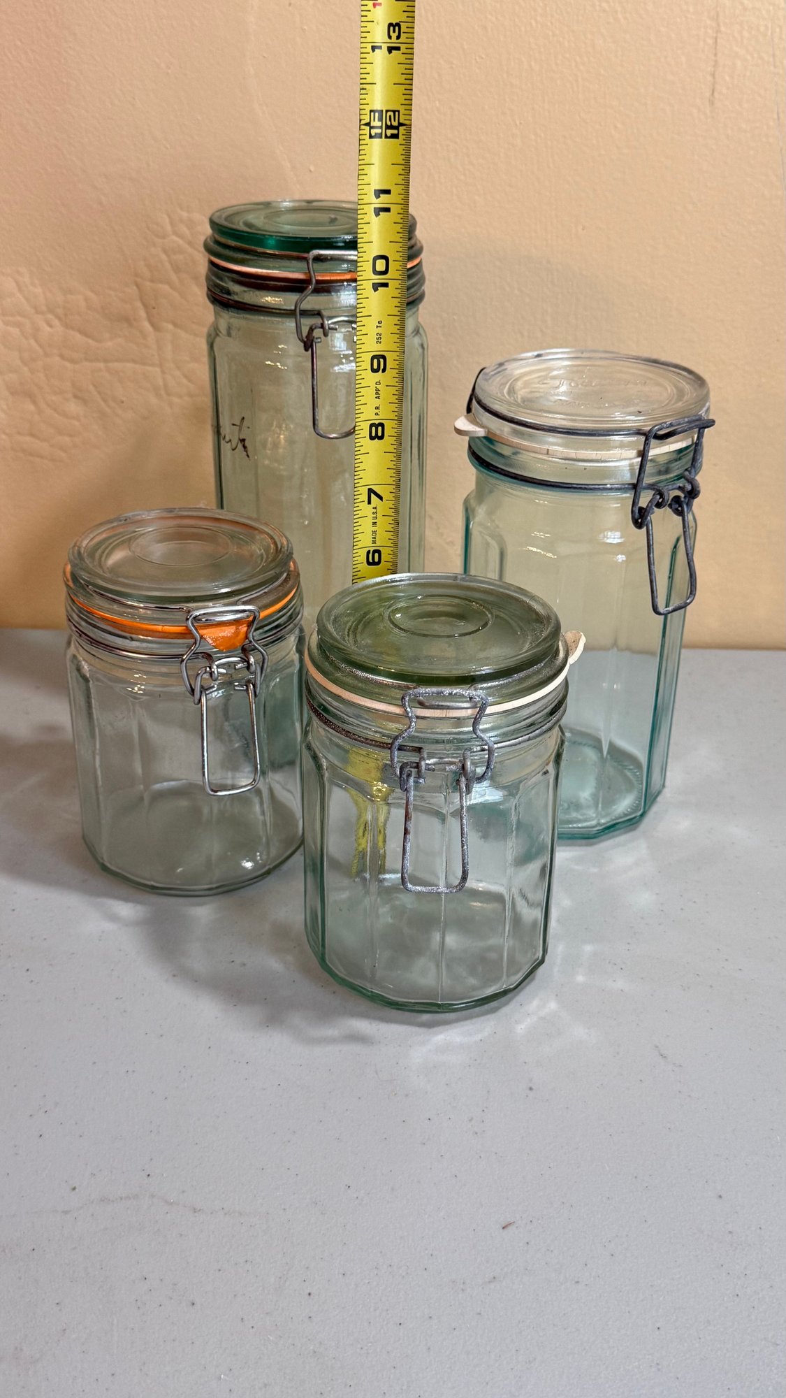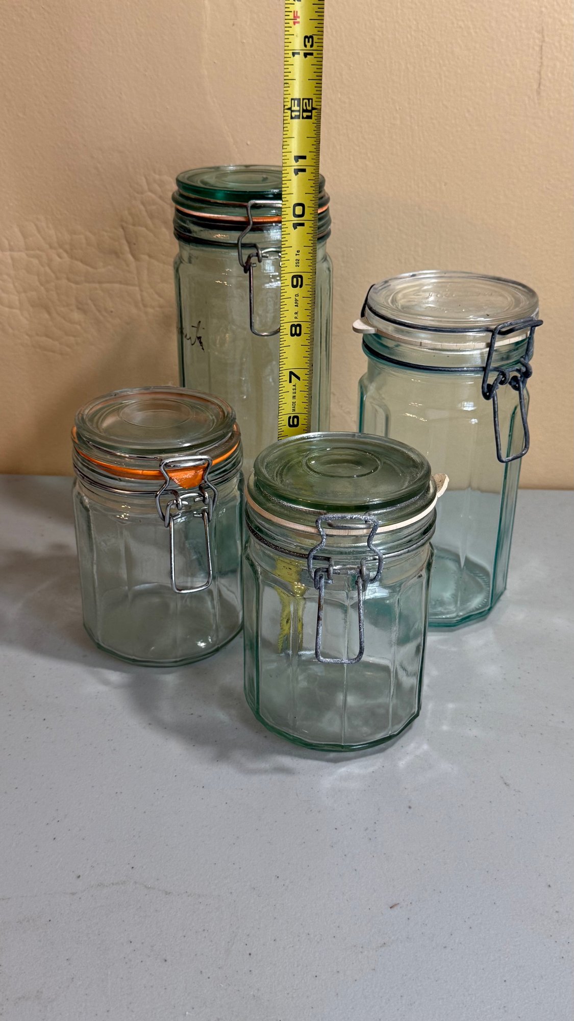 Vintage set of 4 different size canisters is perfect for adding a touch of retro style to your kitchen or countertop. These canisters combine practical storage with timeless decorative appeal.