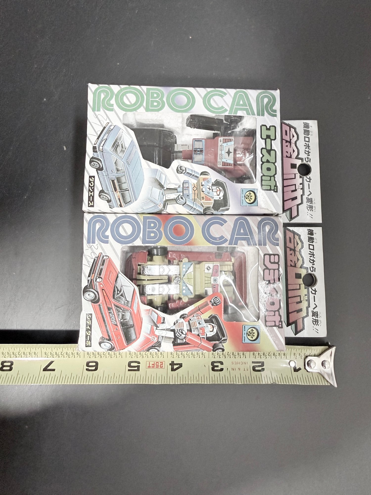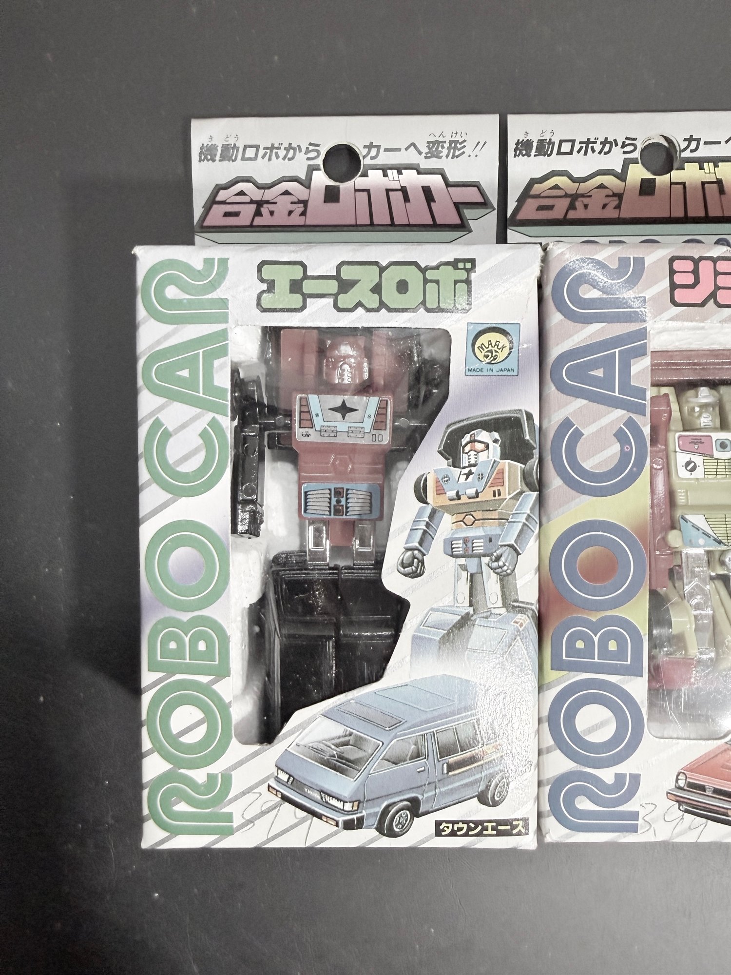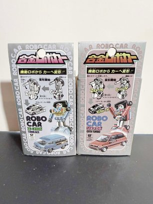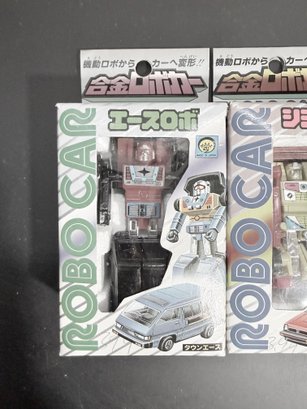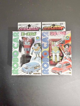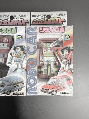 vintage Japanese die-cast "Robo Car" transforming toys from the 1980s.