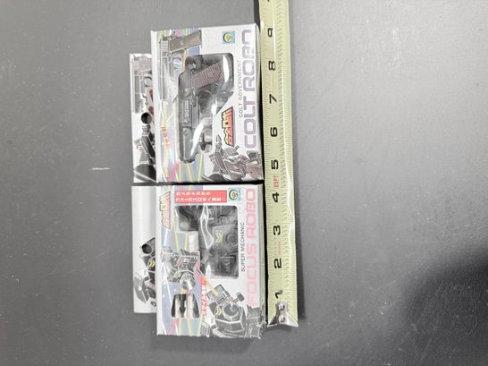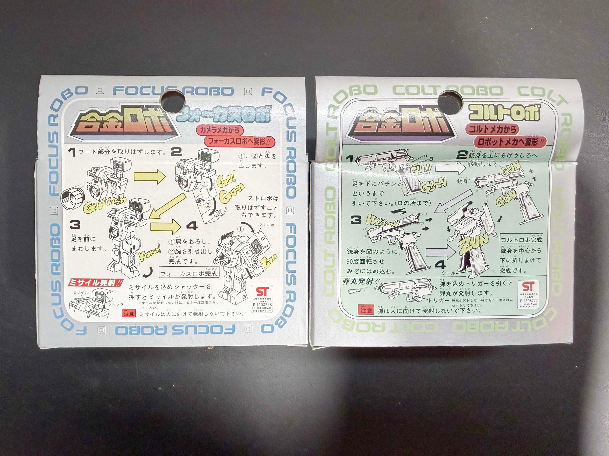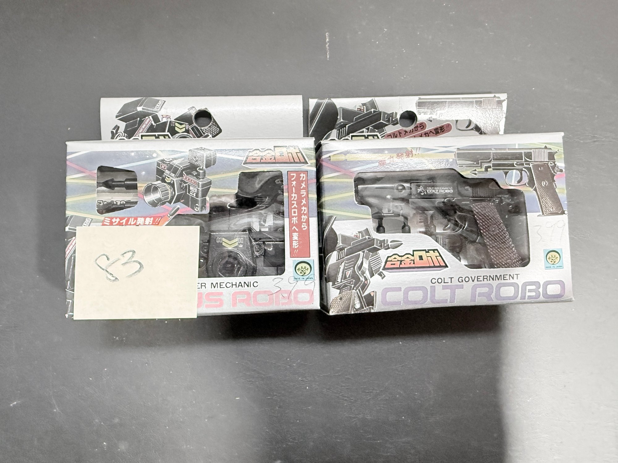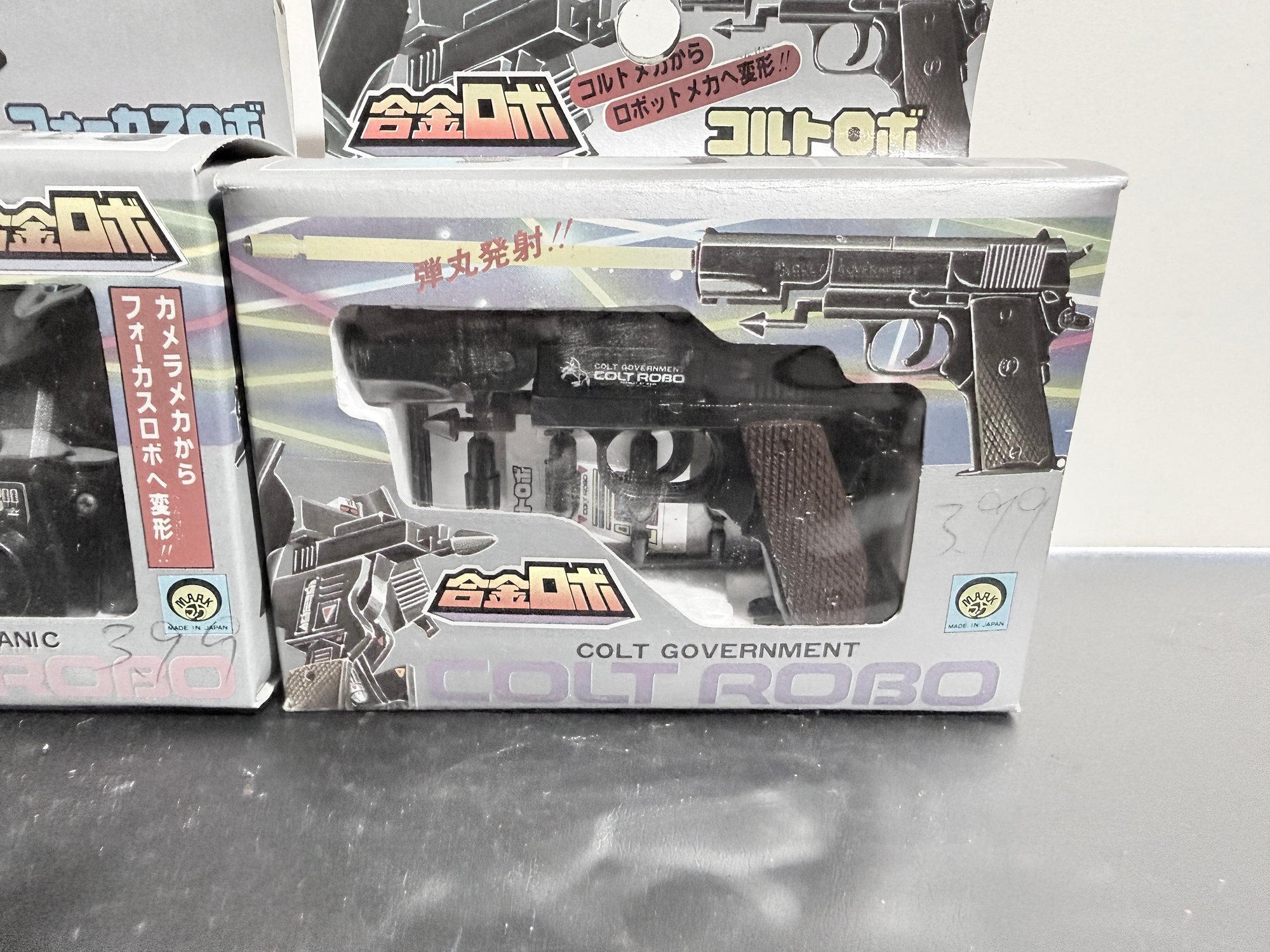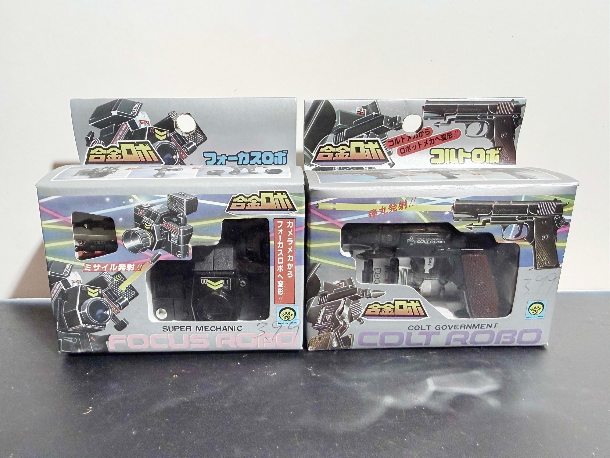 Colt Robo (Right): A robot that transforms into a Colt Government pistol. Similar to the camera robot, it was part of the same Gokin Robo series and is highly sought after by collectors of "gun robo" and pre-Transformers era toys.