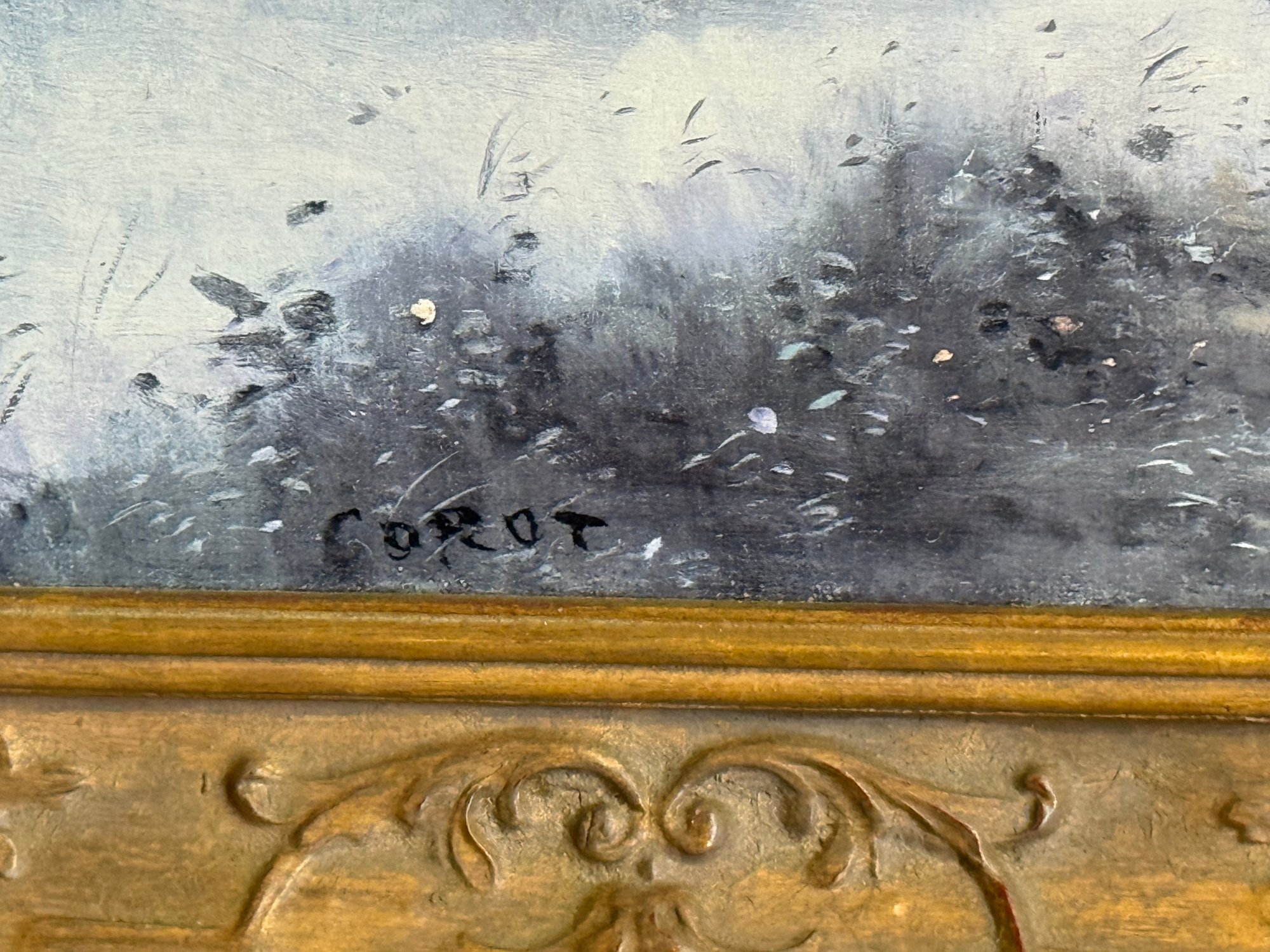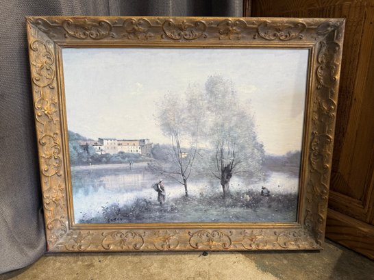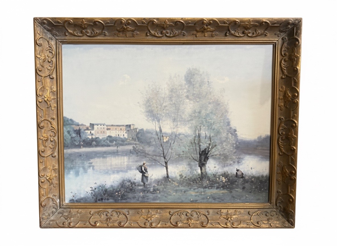 Artist and Scene: The artwork depicts a serene, hazy landscape scene inspired by the area around the pond on Corot's property in Ville-d'Avray, France.