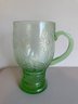 Vintage Large Green Glass Daisy Flower Dandelion Applied Handled Water Pitcher