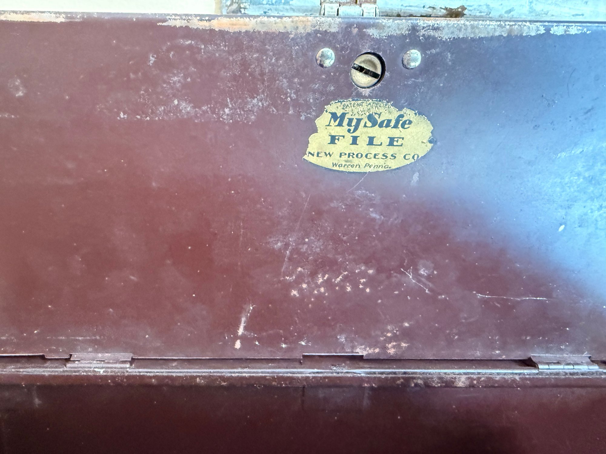 vintage metal file box, "My Safe File" model from the New Process Co.