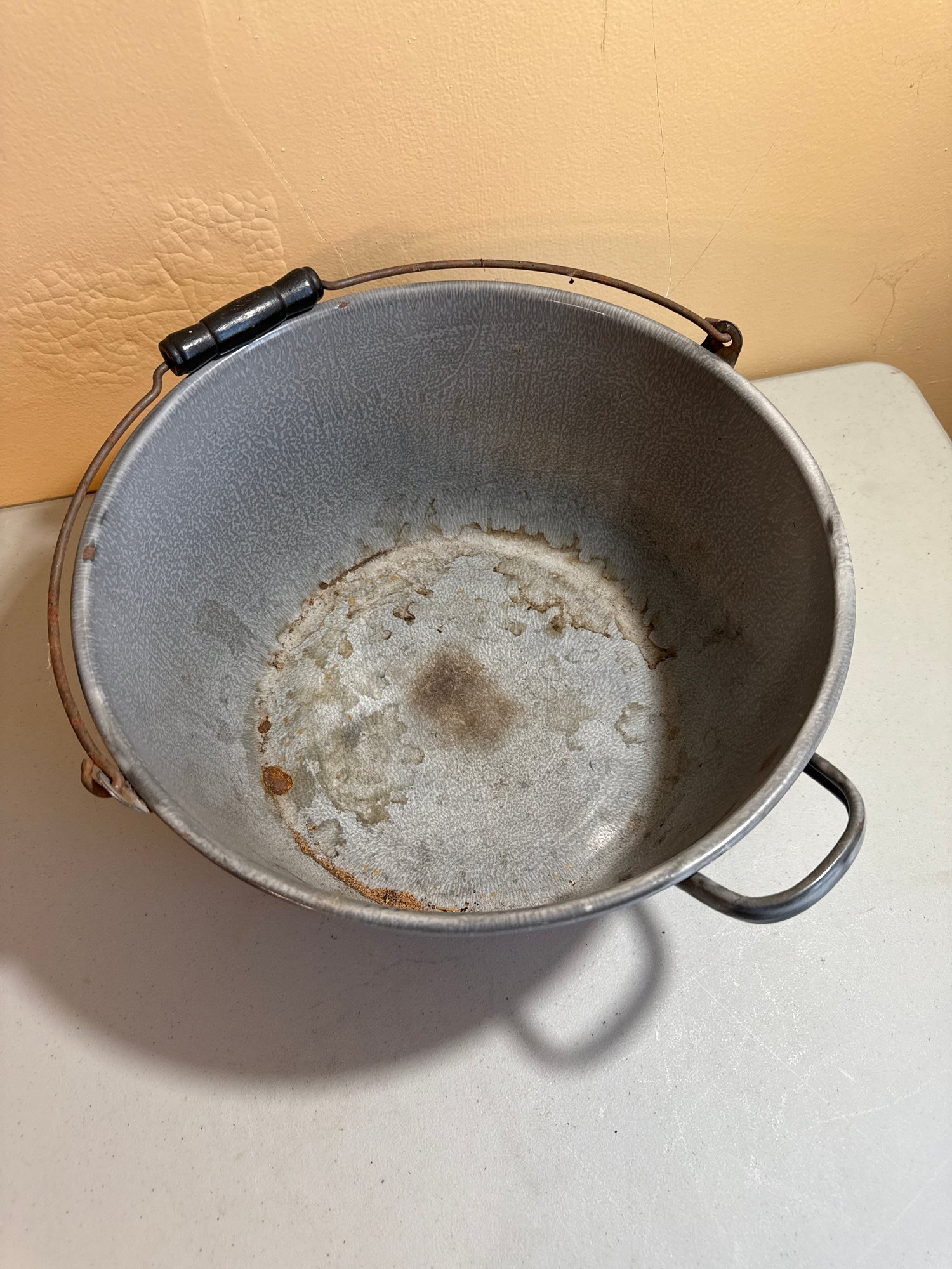 Vintage jam-making kettle is perfect for collectors, home canners, or farmhouse kitchen décor. Its classic design and rustic finish make it both functional and decorative, bringing a touch of nostalgia and practicality to your kitchen or display.