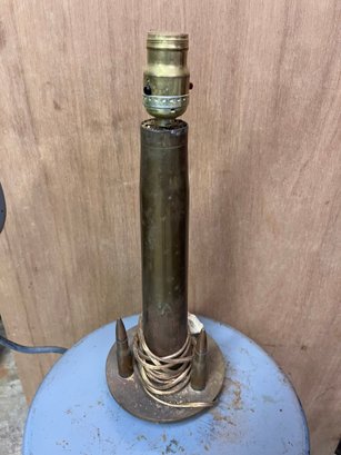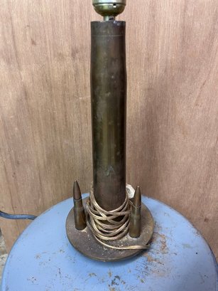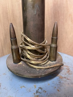 vintage military "trench art" table lamp, typically handcrafted from repurposed brass artillery shell casings and bullets.