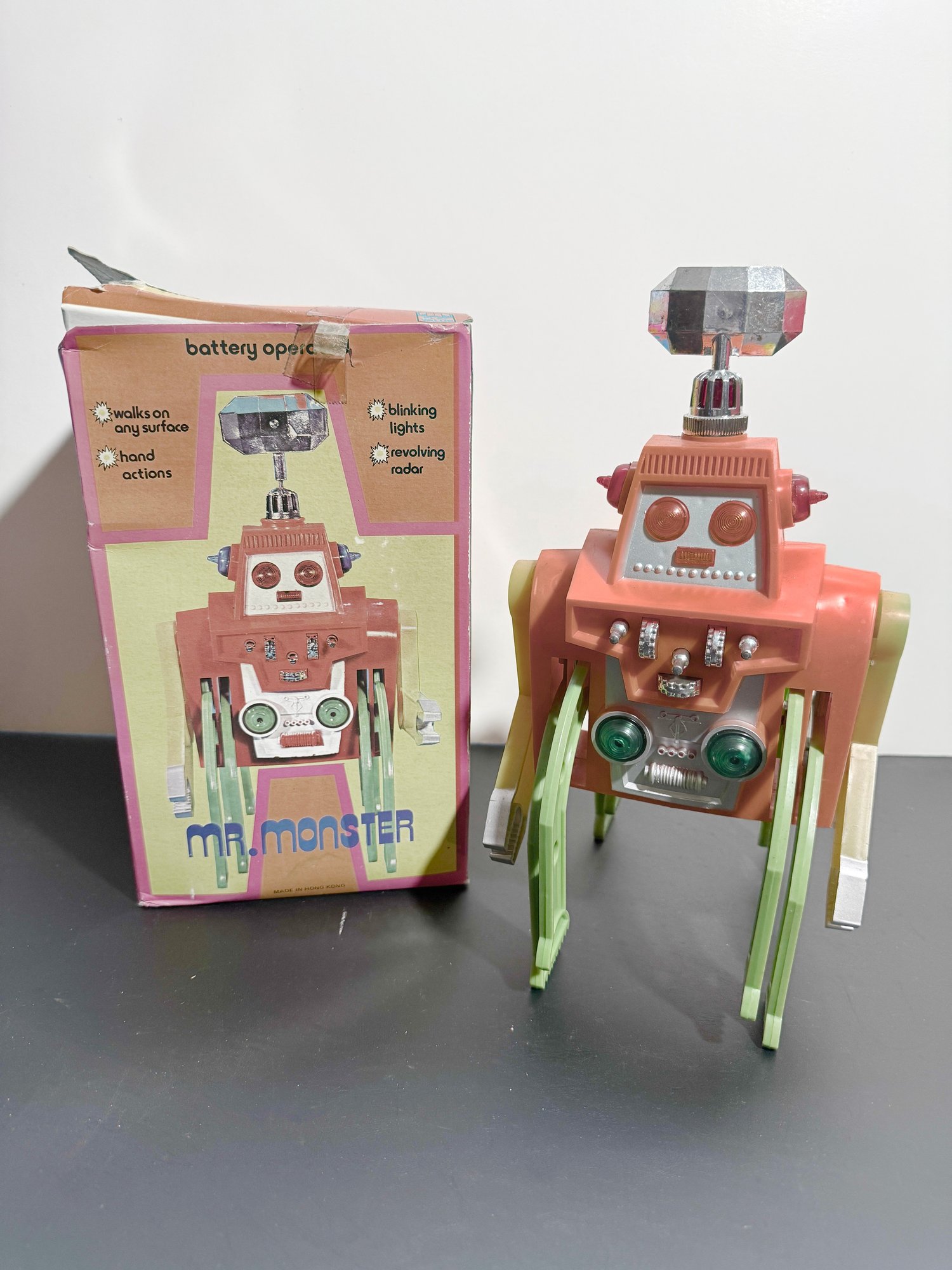 Vintage Mr. Monster walking robot toy manufactured by Illco Toys in the 1970s.