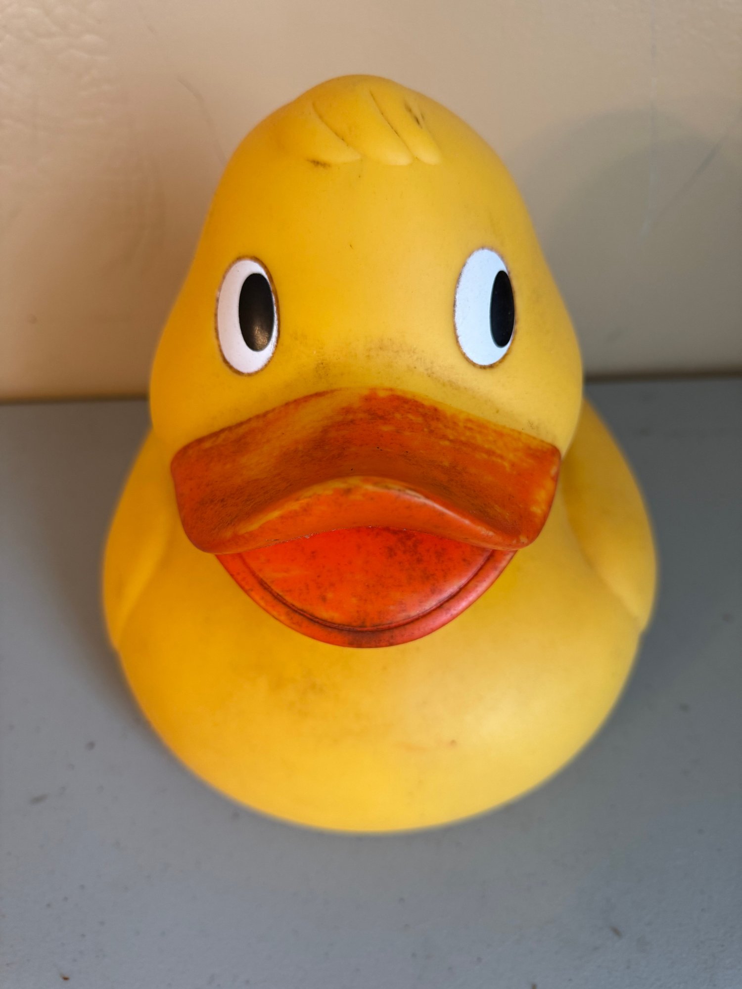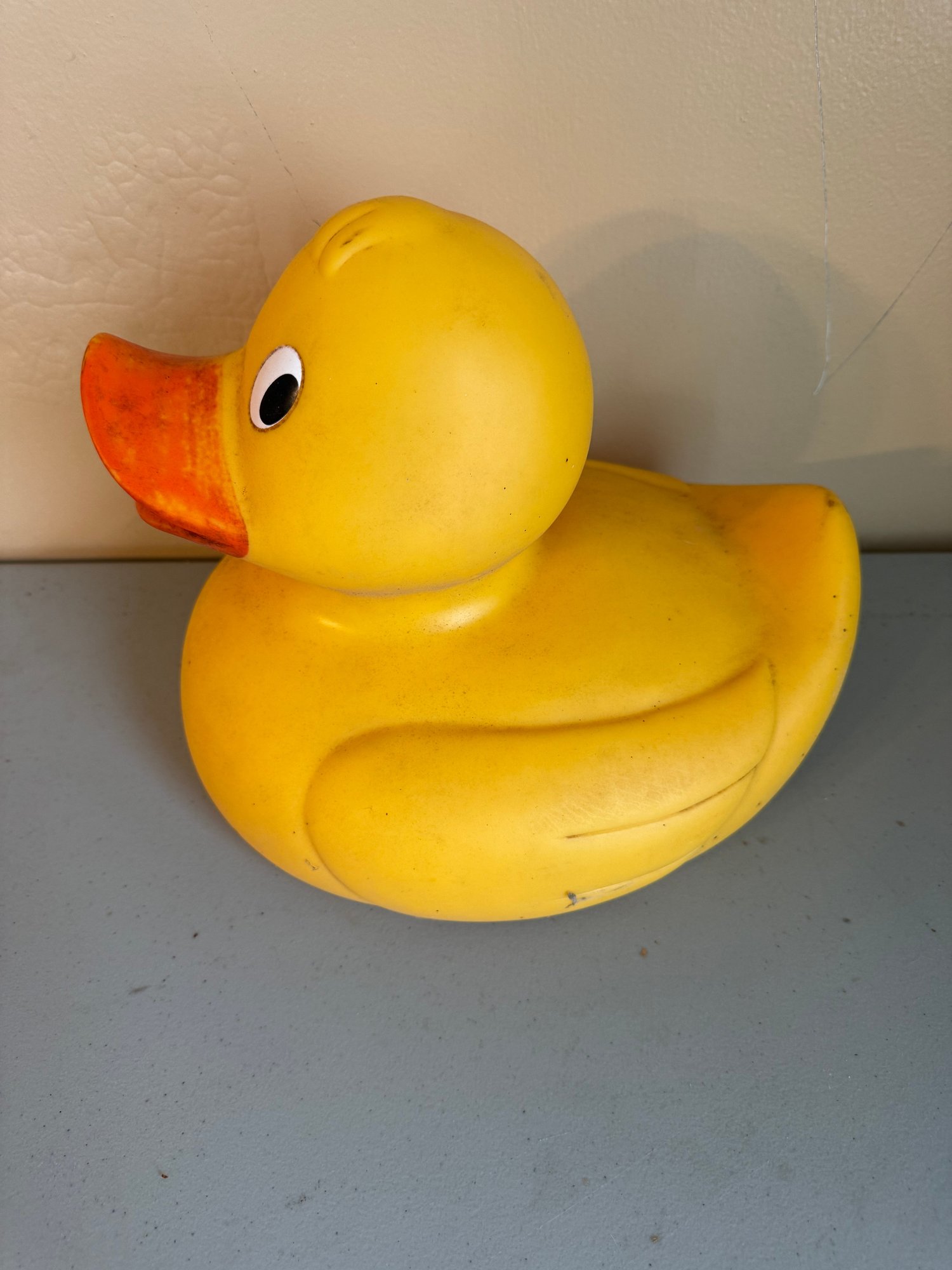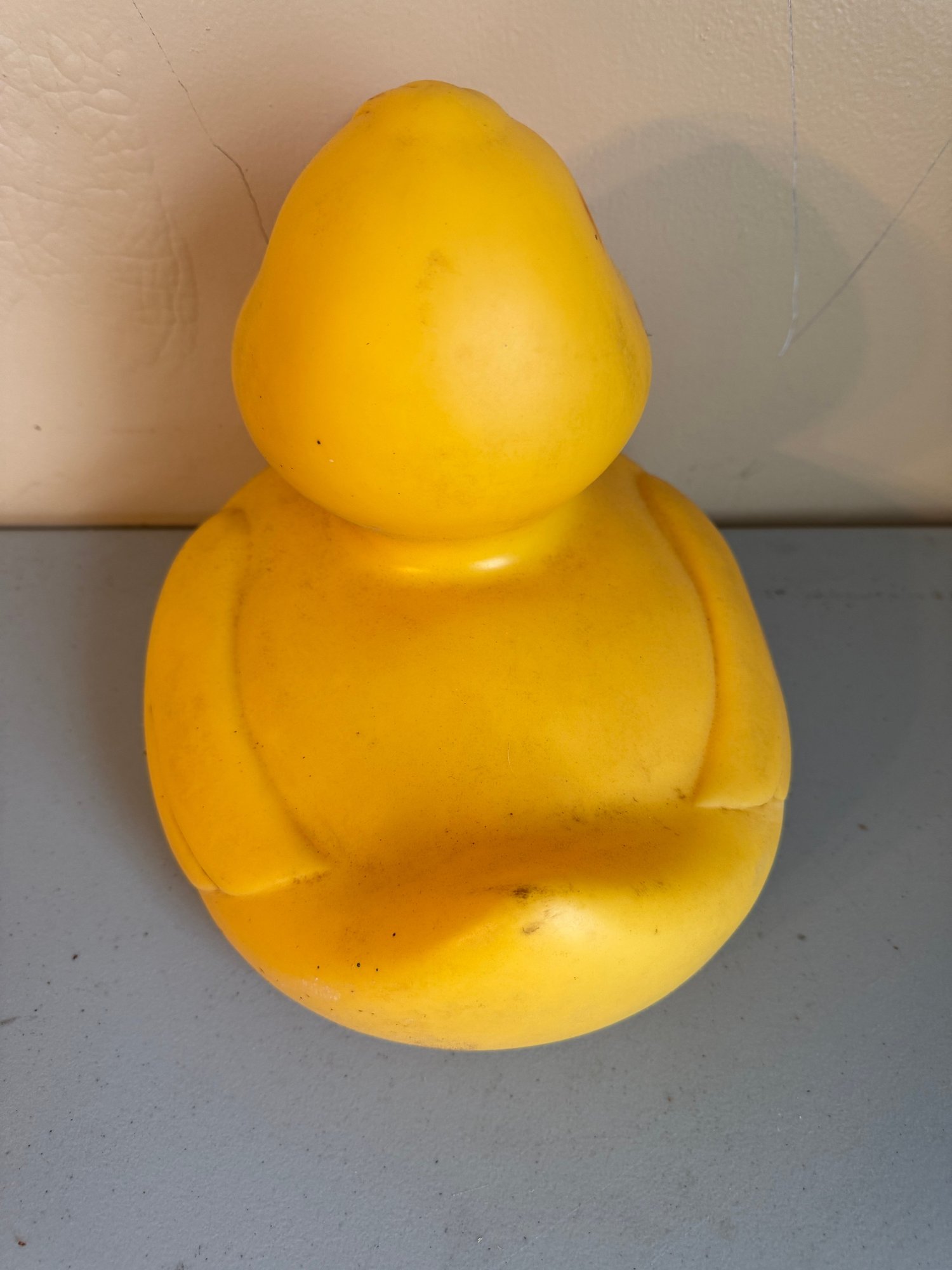A vintage oversized rubber duck is a large, classic rubber toy duck with a cheerful design and nostalgic charm — bigger than the standard bath toy and often sought after today for decoration or collection due to its size, history, and playful look.